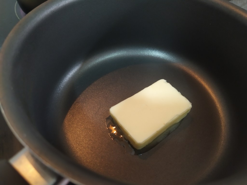 Mientras tanto, vamos a poner la mantequilla a deshacer en una olla y cuando esta se haya disuelto vamos a agregar la harina, removiendo hasta formar un roux (una pasta). Vamos a saber que este está listo cuando adquiera un color dorado y tengamos un olor tostado…¡Ojo, que no quemado!. Ahora vamos a añadir de dos veces la leche, sin dejar de remover en el sentido contrario a las agujas del reloj, hasta que vaya espesando la mezcla. Añadiremos ahora sal, pimienta negra y nuez moscada al gusto.