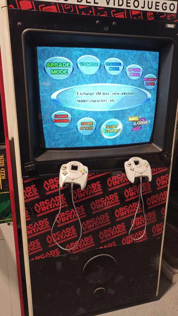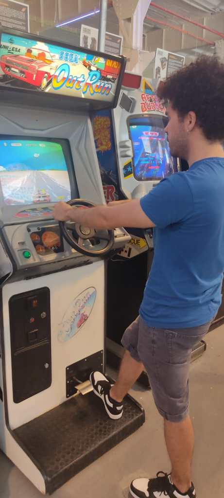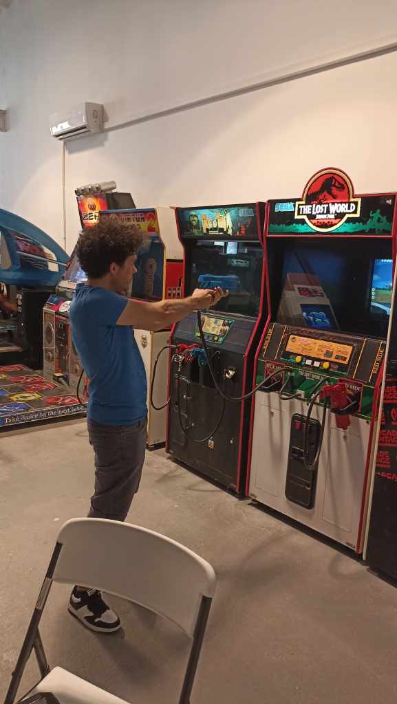 Repartidas ya las tollinas, tocaba el turno de volver a probar después de muchos años esas máquinas en las que jugar en cualquier recreativo era símbolo de haber recibido una buena cantidad de pesetillas más alta de lo habitual en la retribución semanal, pues eran muchísimo más caras que cualquier máquina común, eso sí, se disfrutaban tanto o más y deseábamos no perder en el primer intento para que esa partida tan cara no fuese tan breve. Pero como en este museo podemos probarlas hasta decir basta sin temor a dejarnos los cuartos, empezamos a probar toda y cada una de ellas, destacando sobre todo las delirantes partidas a la máquina de F-Zero, Star Wars, Jurassic Park «The Lost World´´ y Virtua Tennis, recalcando además uno de esos arcades de baile donde dejamos constancia de que somos unos patos maneados a la hora de seguir el ritmo.