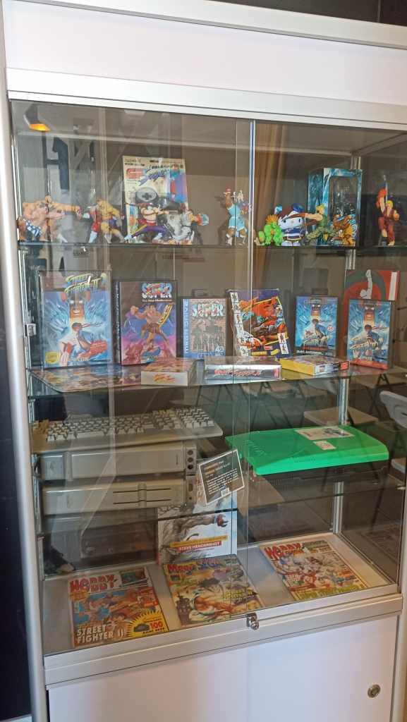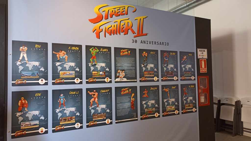 Dejando ya de lado este agradable recibimiento, nos encontramos con la primera de las dos exposiciones temporales que acontecían durante estos días de visita, y que estaba dedicada nada más y nada menos que a nuestra saga de videojuegos de lucha favorita ¡STREET FIGHTER! De esta manera tuvimos la oportunidad de tener a la vista una enorme vitrina con material de todo tipo de la franquicia, desde los videojuegos más característicos, pasando por figuras, libros y todo tipo de mechandising a cada cual más curioso. Después de esto nos encontramos con una enorme pared en la que se encontraban todos los personajes de la segunda parte delcjuego, presentándonos todas las características de cada uno de ellos. Un mural perfecto para deleitar a los fans más veteranos y dar a conocer a estos clásicos personajes a nuevos jugadores.