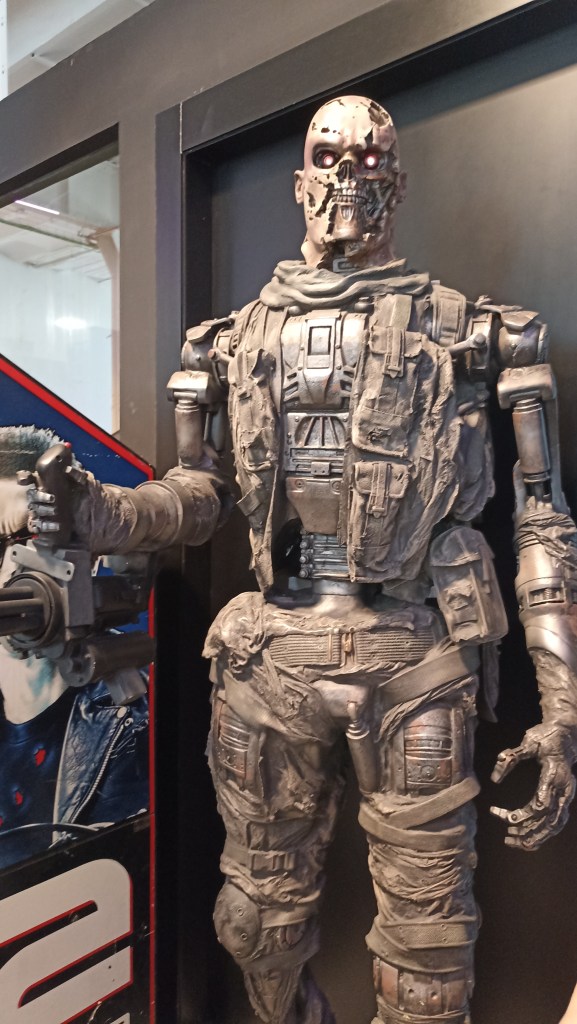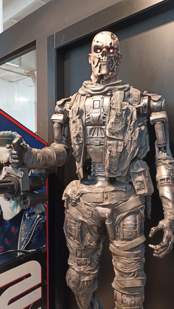 Vigilando ya que no tuviésemos un mono de tres cabezas detrás de nosotros (nótese la referencia) llegamos a otra sala en la que una majestuosa e imponente figura a escala de un T-800 nos daba la bienvenida a lo que podemos considerar uno de los paraísos para cualquier amante de los videojuegos. Y es que es en esta parte del museo donde se encuentra toda la chicha y donde nos quedamos de piedra al poder ver filas y filas de máquinas arcades y pinballs, cada una mostrándonos en sus pantallas juegos clásicos, emitiendo melodías muy reconocidas para nuestros oídos, escuchar el machaque de los botones, el movimiento de los sticks y evocarnos directamente a todos aquellos y gratos recuerdos que teníamos de los salones recreativos durante nuestra niñez/adolescencia.