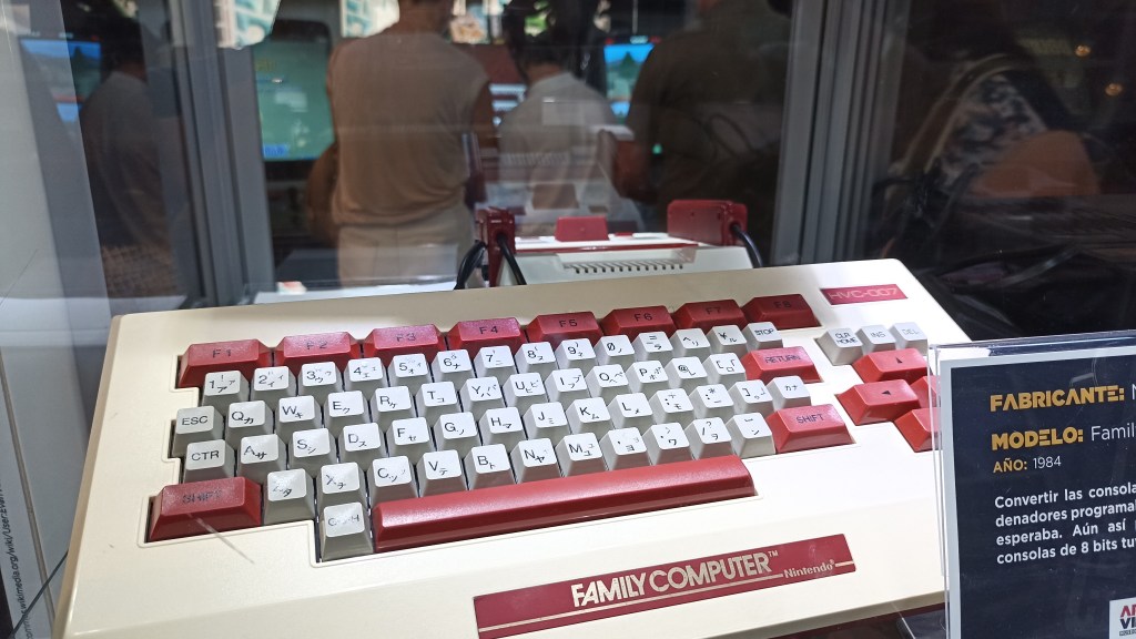 Tras masajear nuestras muñecas y soplar nuestros doloridos dedos después de tanto machacar botones, tocaba relajarse un poquito y disfrutar de la exposición que el museo tiene preparada para deleitarnos con todas las videoconsolas y ordenadores clásicos que han aparecido a lo largo del tiempo, organizadas en vitrinas por sus fechas de lanzamiento y acompañadas de toda la información e historia que rodea a cada una de ellas, pudiendo observar en cada compartimento verdaderas joyas que a día de hoy ya quisiéramos tener y/o probar, amén de periféricos a cada cual más curioso para las diferentes máquinas y que no llegaron a nuestro mercado.