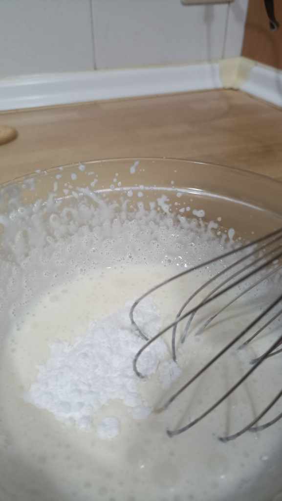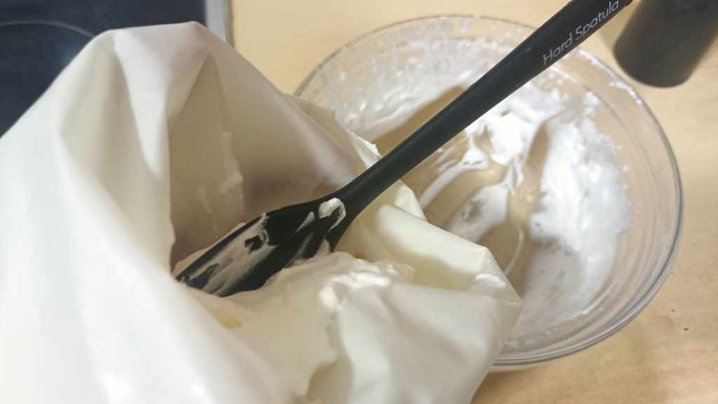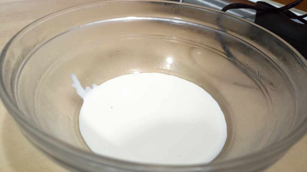 Vertemos la nata e iremos batiendo con la ayuda de una varilla bien manual o eléctrica, lo que tengáis por casa. Comenzaremos a batir la nata y cuando empiecen a salir burbujas, añadiremos el azúcar glass poco a poco y sin dejar de batir hasta que esta esté consistente. Para saber cuando está lista, solo tenemos que darle la vuelta al bol y si no se cae la tendremos en el punto óptimo, pero cuidado y aseguraos que tiene algo de consistencia si no queréis naparos y endulzaros la cara.