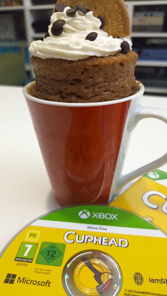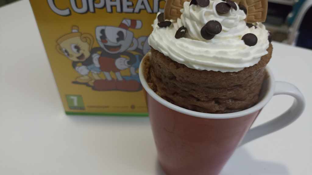 Y listo, como podéis leer, queridos lectores, tenemos una elaboración sencilla y rápida, que además de basarse en la receta que podemos encontrar en el juego, utiliza la taza como recipiente para elaborarla y dar homenaje a los personajes protagonistas. Así vais a poder dejar de lado momentáneamente la dificultad para las partes más tediosas de este gran y retador juego y recargar las pilas con algo dulce para entablar las mejores estrategias con las que derrotar al jefe con el que nos enfrentemos para poder saldar nuestra deuda y salvar nuestras almas para seguir disfrutando del juego.