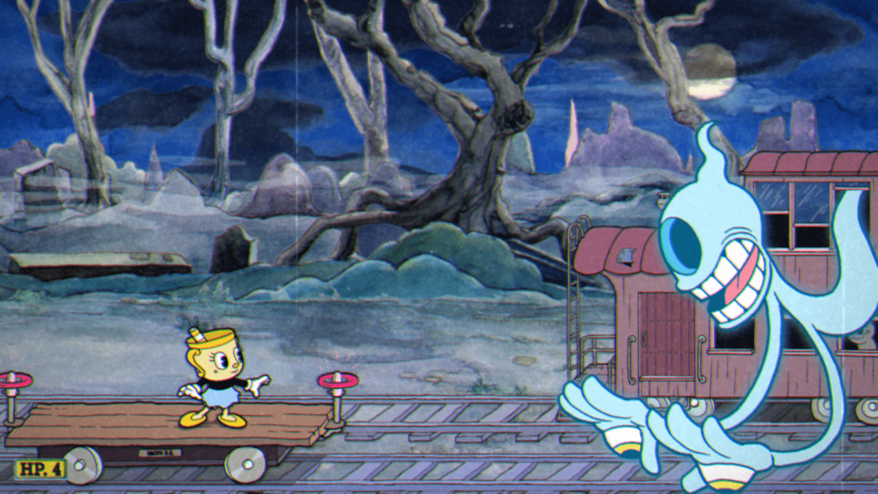 Aparcando ya la frenética jugabilidad y esfuerzo que supone el juego, vamos a adentrarnos en uno de los apartados que más destacan del título y que es el visual. Nos encontraremos de lleno con niveles con un estilo artístico intachable, pintados a mano de manera digital y presentando una paleta de colores bastante recargada que hace que los escenarios destaquen nada más empezar el nivel que seleccionemos. A la par, cabe recalcar todas y cada una de las animaciones que presentan los personajes del juego y las acciones que realizan en cada momento, derrochando bastante personalidad, desde el principio del combate tomando una pose o haciendo una mueca hasta en cada uno de sus diferentes ataques, que ocuparan parte de la pantalla en su totalidad. Cada una de ellas se crearon con las mismas técnicas de animación de principios del siglo pasado, utilizando para ello y como herramienta principal el rotoscopio. Destaca también esa sensación de grano en pantalla, como si de una película vieja se tratase, provocando, de esta manera, creer estar visualizando un corto clásico de animación interactivo.