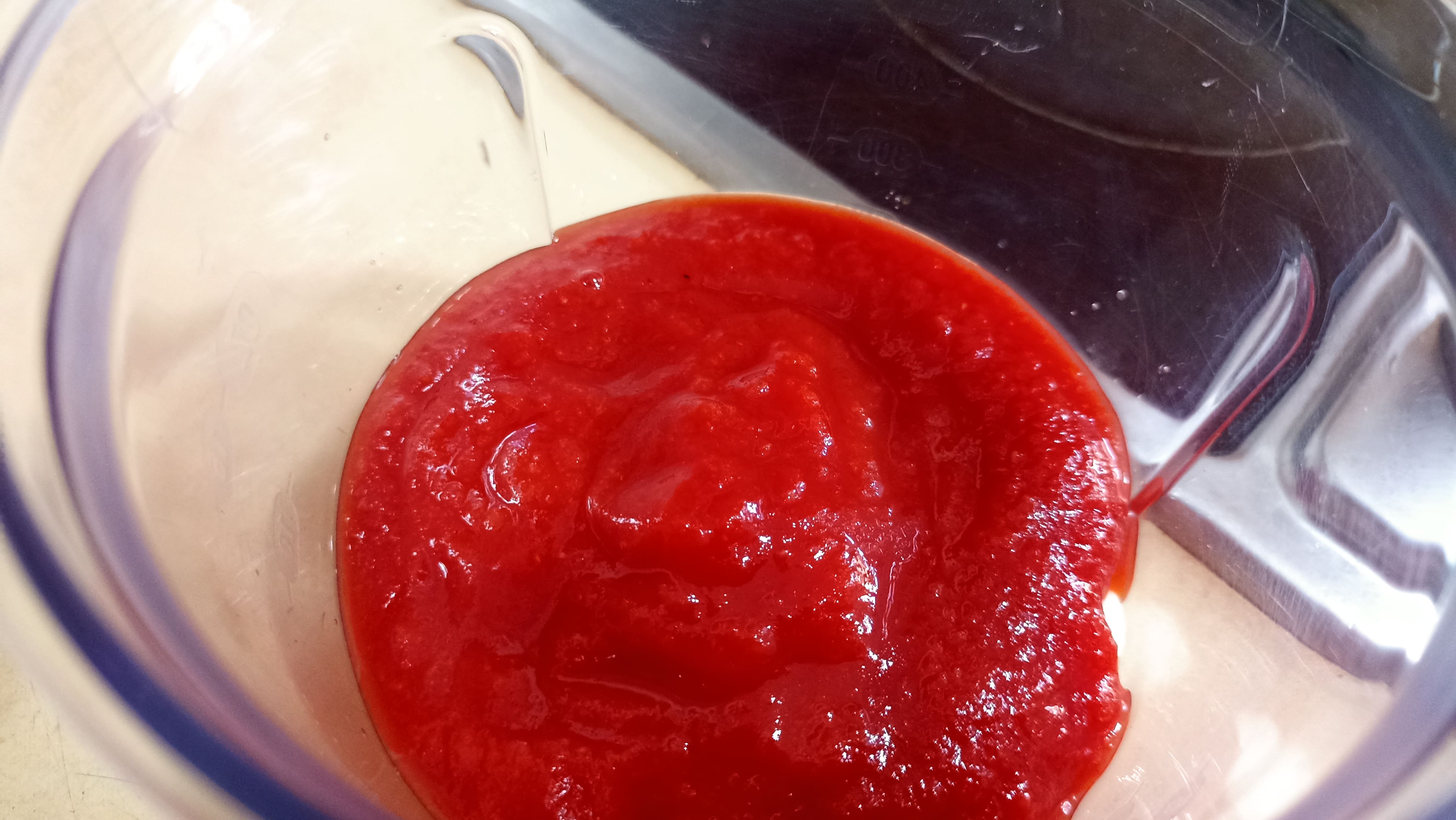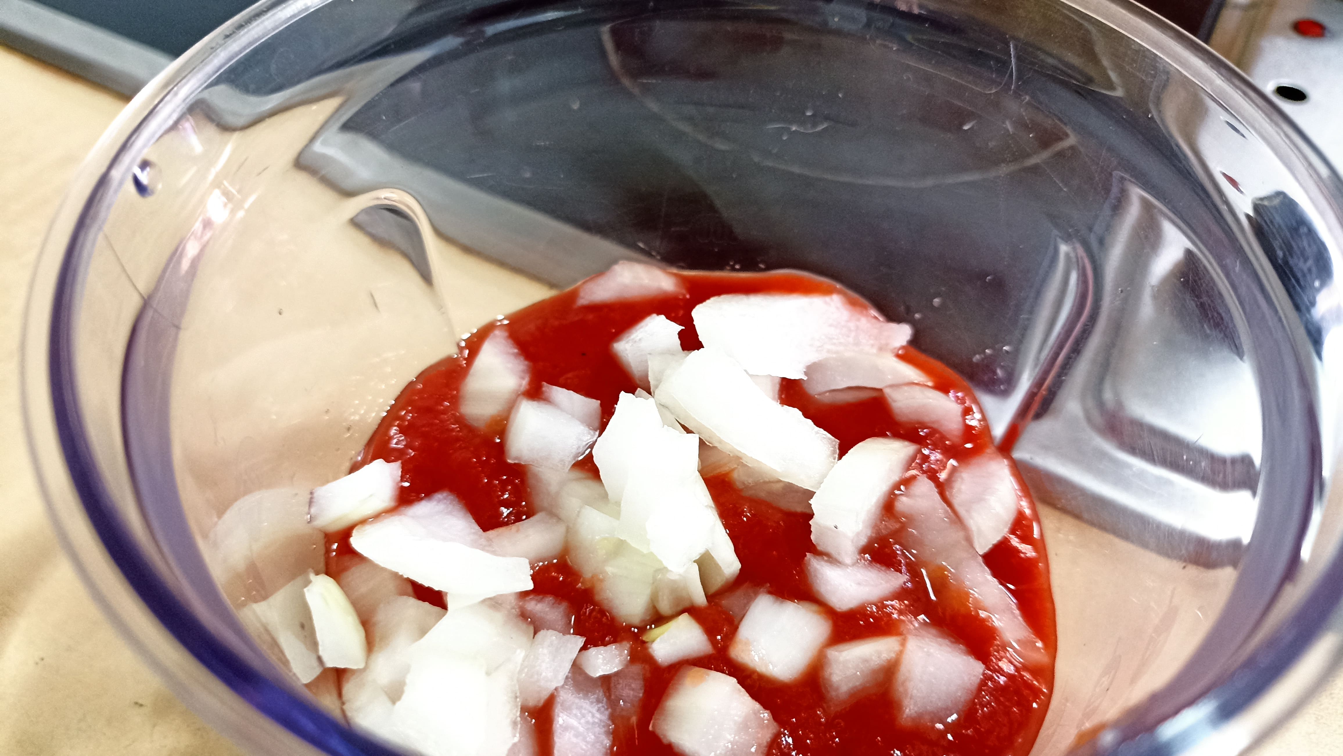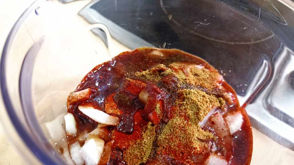 Para ello, primero vamos a elaborar la salsa donde van a cocerse las pechugas. En el vaso de la batidora o en algún bol que nos permita triturar, vamos a colocar los dos dientes de ajo enteros, la salsa de tomate, la cebolla picada, el comino, el azúcar moreno, la cayena y el zumo de naranja. Trituramos y una vez obtengamos la salsa la pasamos a una olla express previamente colada para evitar grumos. Si no tenemos olla, podemos poner a cocer el pollo en una olla normal, aunque tardará mucho más. Si hemos elegido la olla rápida el tiempo de cocción será de 20 minutos a partir de que salga el vapor, si por el contrario hemos elegido la olla normal deberemos dejar cocer a fuego medio durante unos 45 minutos.