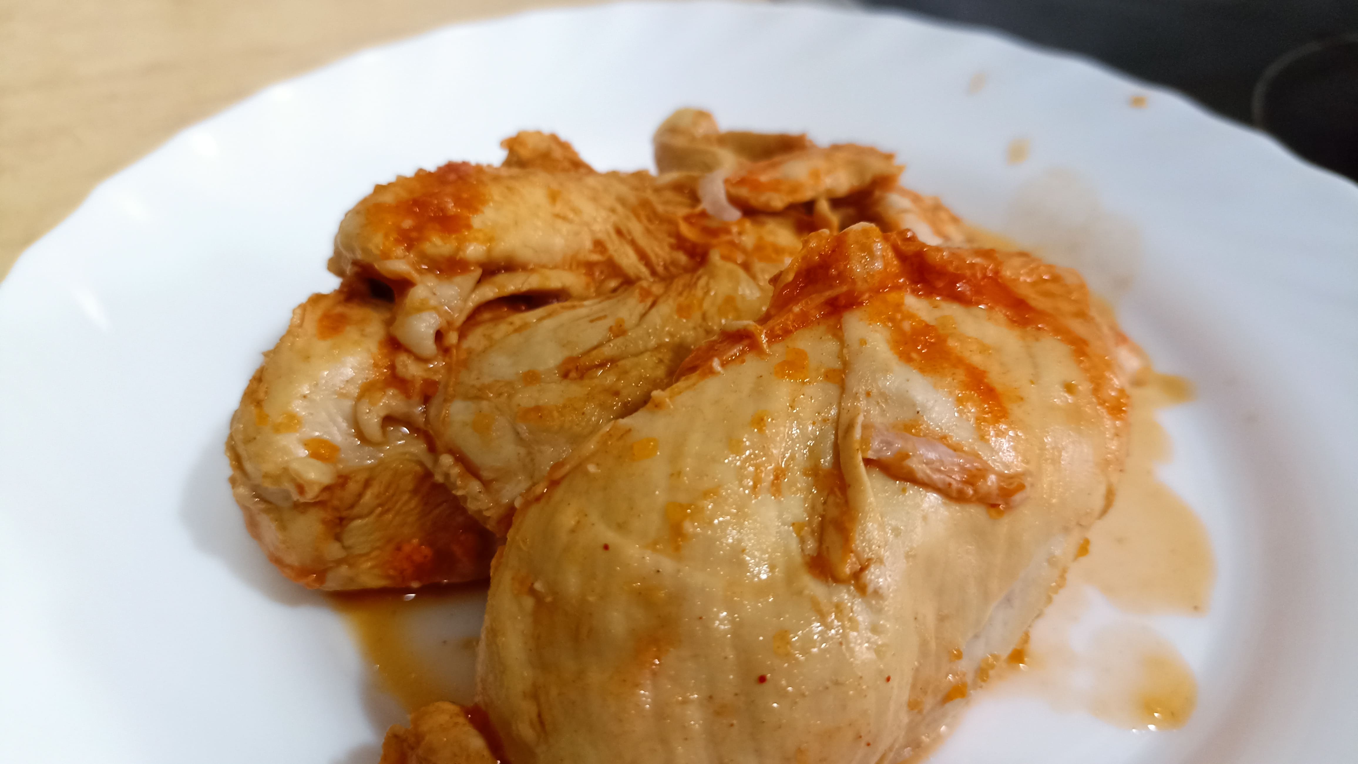 Retiramos las pechugas de la salsa y dejamos enfriar. Mientras vamos a probar de sal la salsa y dejaremos reducir durante 5 minutos a fuego fuerte, removiendo de vez en cuando para evitar que se nos pegue.