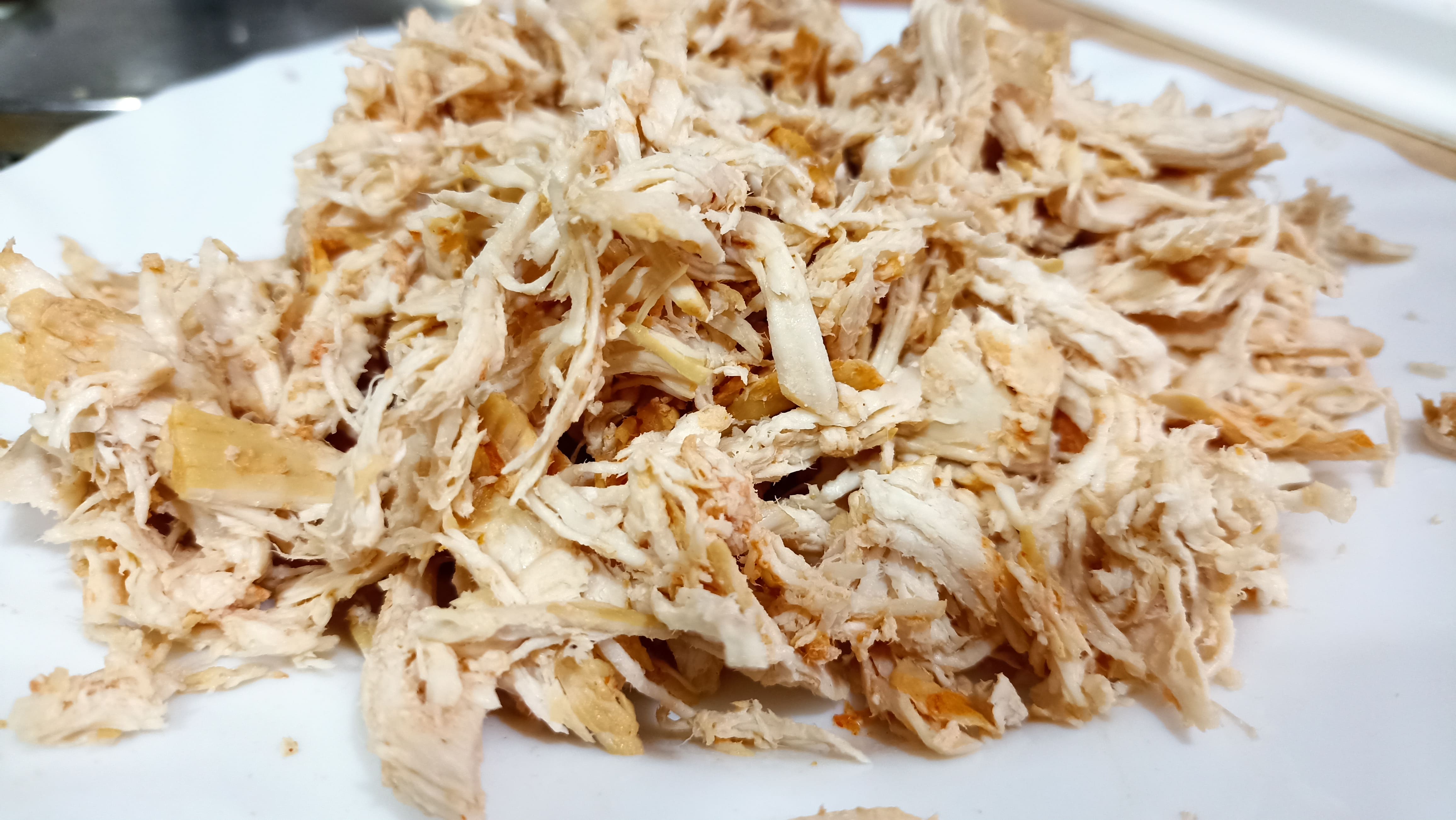 Antes de elaborar la masa, vamos a preparar el pollo, para que una vez que esté cocido se vaya enfriando bien para poder deshilacharlo.