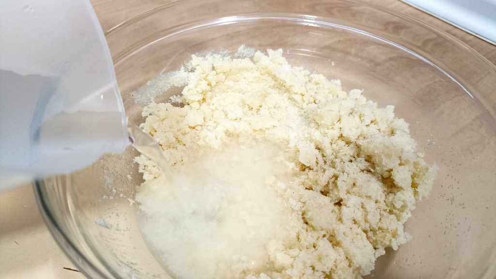 Durante este rato de espera, nos toca elaborar la masa de los tacos, haciendo la receta más larga pero más amena si habéis empezado a escuchar otro programa de SPB. Para ello vamos a echar la harina en un bol, añadiendo a esta la sal. Agregamos ahora el agua templada, poco a poco mientras removemos con la mano o con la ayuda de una lengua. La masa debe tener una textura blanda, aunque no en exceso, pero que mantenga la forma y podamos bolearlas sin problemas.