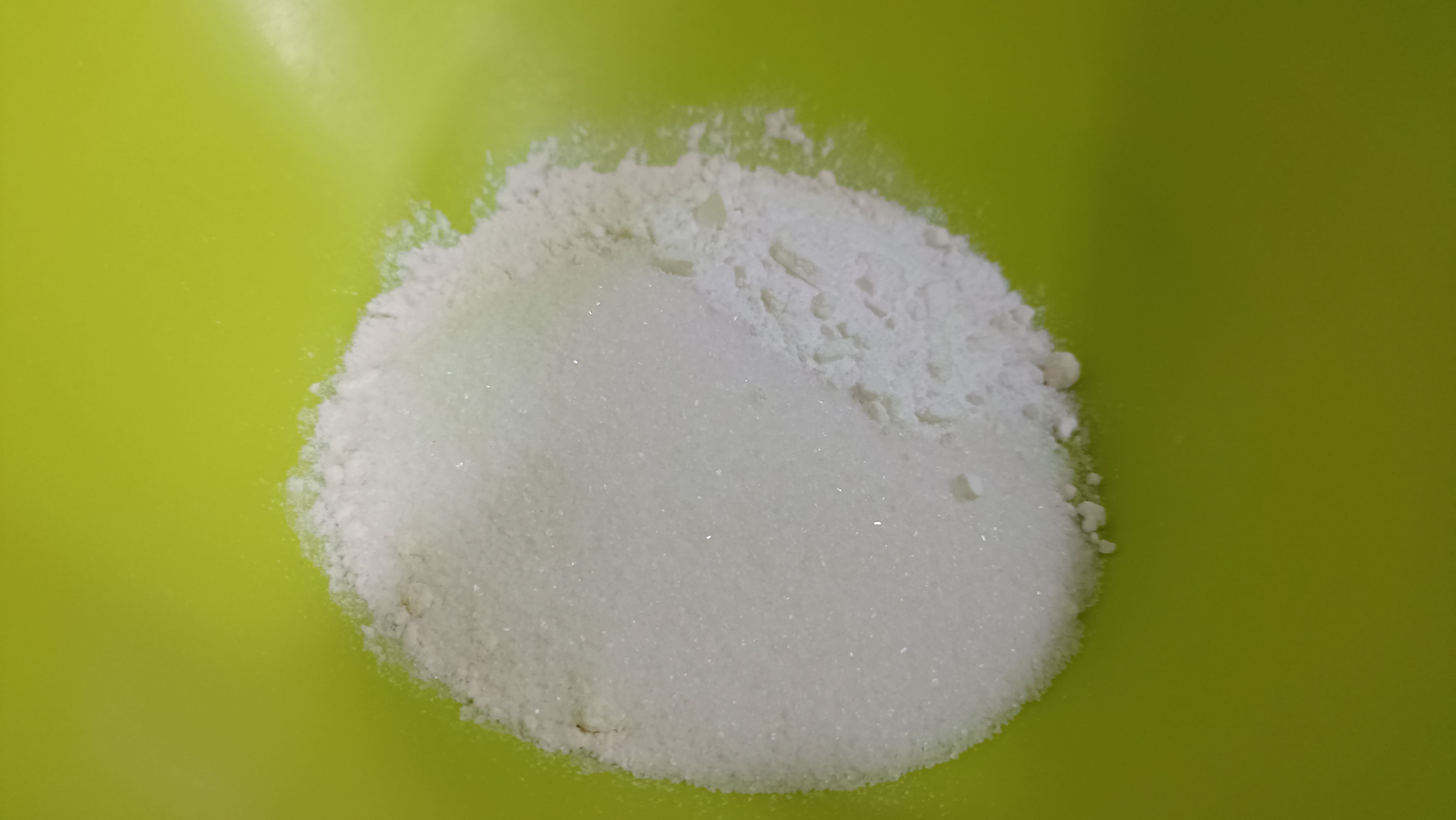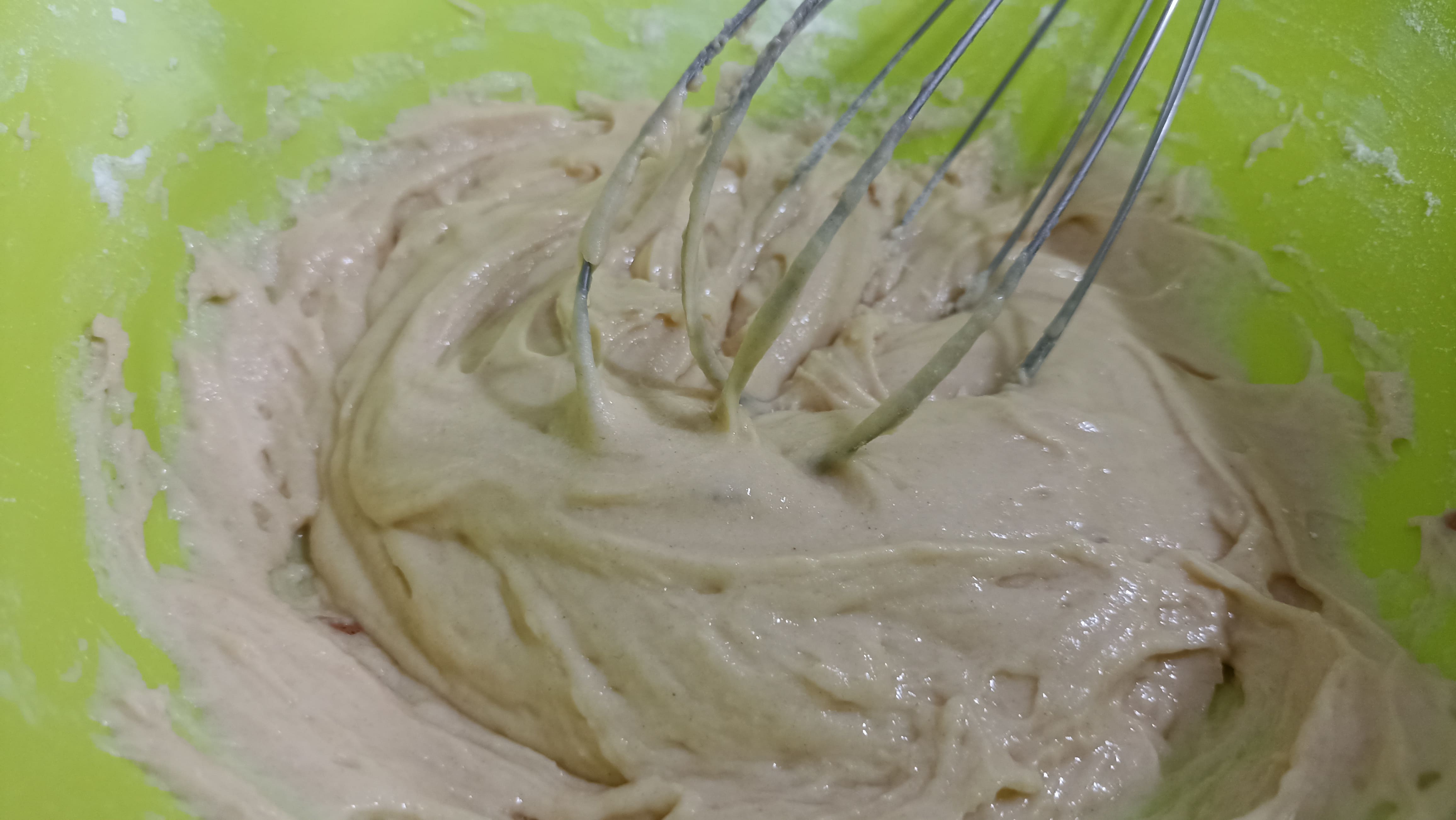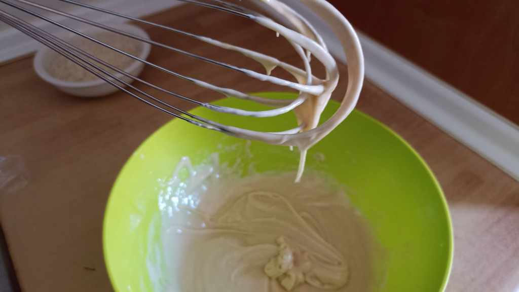 Primero vamos a mezclar todos los ingredientes sólidos, es decir, la harina de trigo, la levadura en polvo, el azúcar y la sal. Removemos bien para que se mezclen todos los ingredientes y a continuación y poco a poco vamos a añadir la leche mezclada con el agua, removiendo bien con la ayuda de una varilla hasta obtener una masa consistente y pegajosa. Esta será perfecta cuando caiga lentamente desde la varilla al alzarla un poco, es decir, que se estire sola. Una vez formada la masa, la dejaremos en la nevera durante una hora aproximadamente para que enfríe.