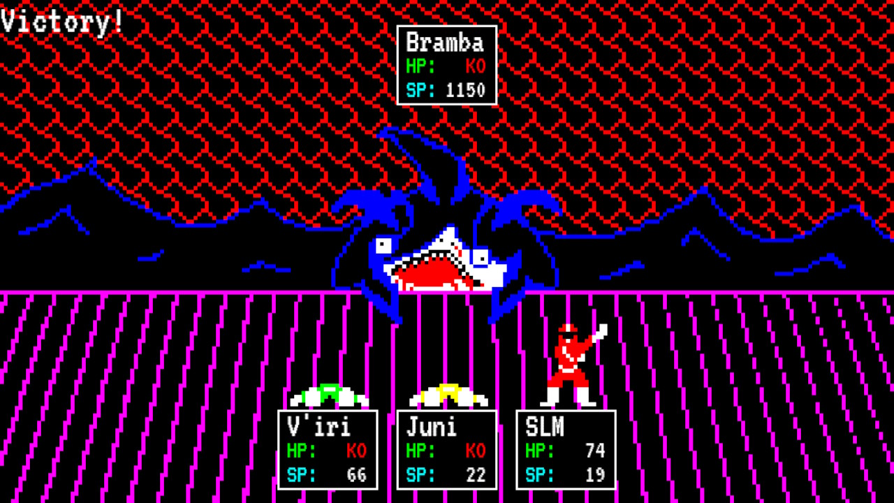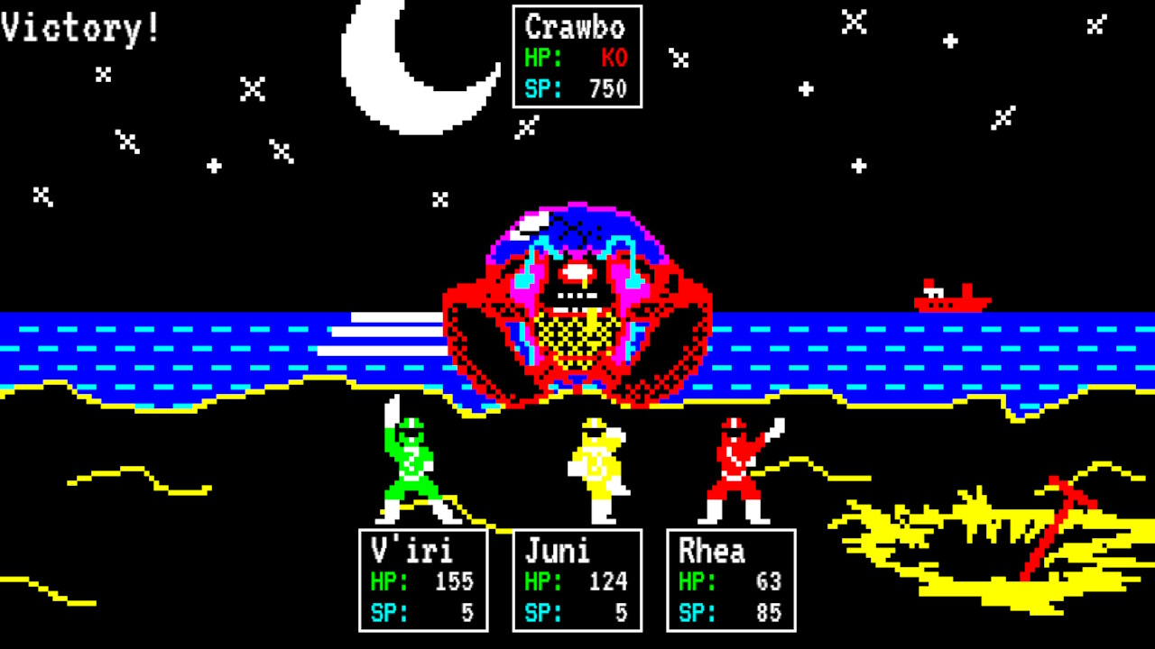 Dejando de lado la jugabilidad, vamos a poder disfrutar de un título bastante vistoso, pues como bien hemos recalcado antes, solo va a estar compuesto por 8 colores en pantalla siendo estos más que suficientes para destacar un precioso pixel art. Debido a esto, los sprites de los personajes van a ser bastante simples y sencillos, pero van a acentuar la aparición de estos durante las batallas con animaciones muy llamativas. Presentará también curiosidades en la animaciones de la pantalla de título, pues si hemos salido del juego y hemos avanzado en la trama aparecerán derrotados los enemigos a los que hayamos vencido.