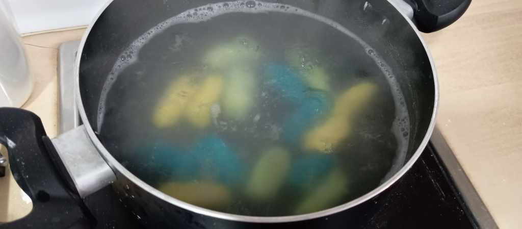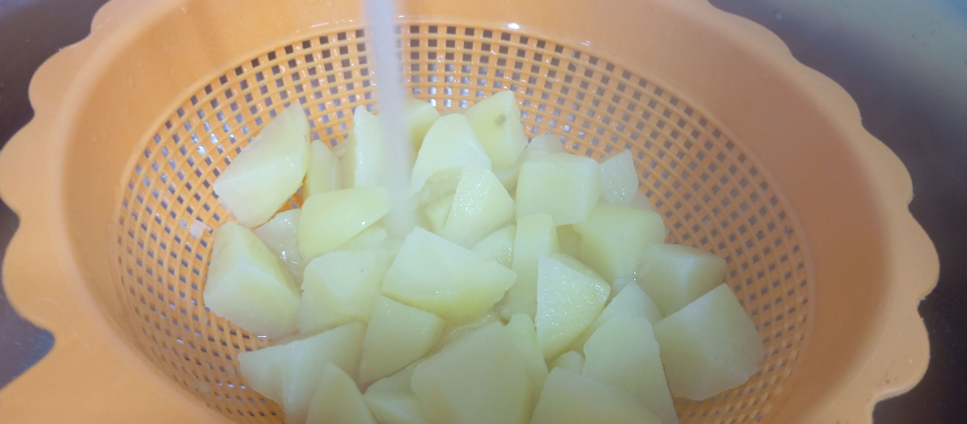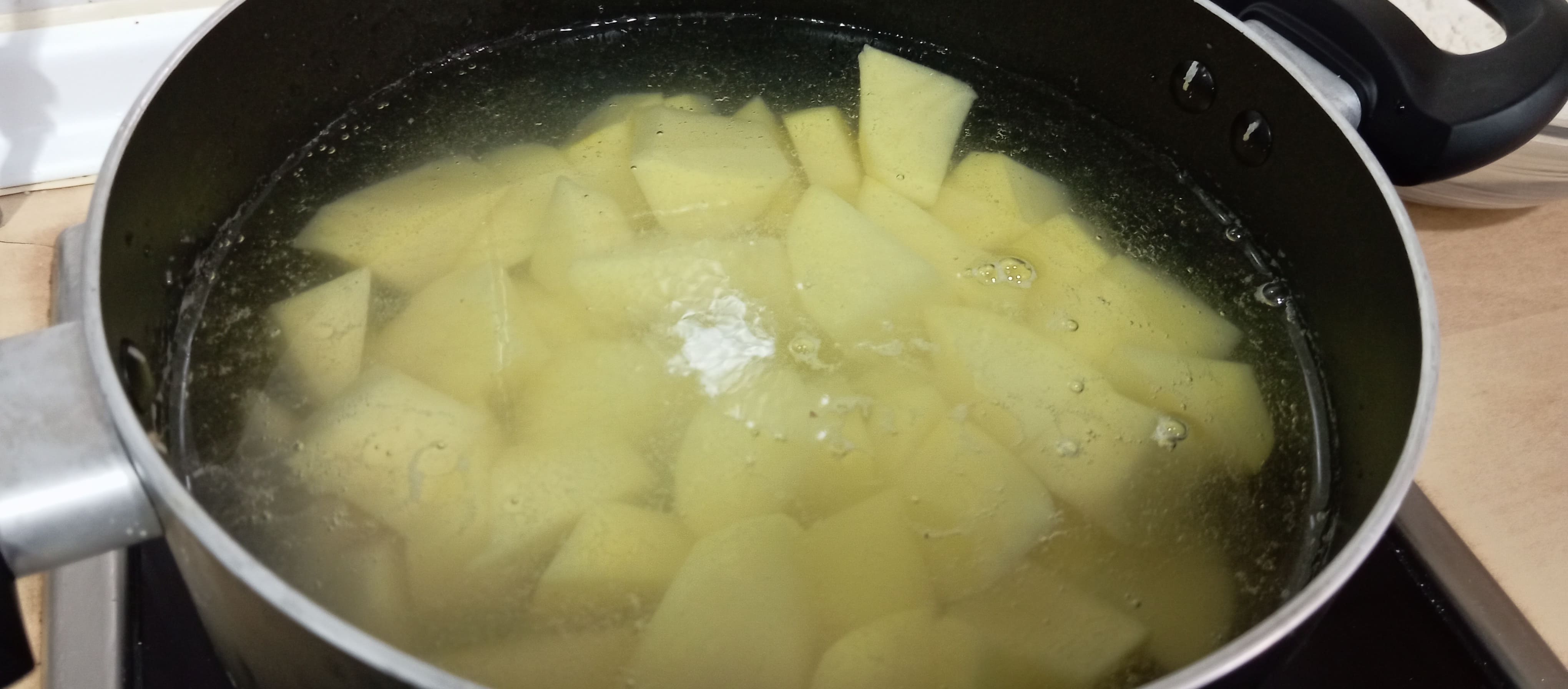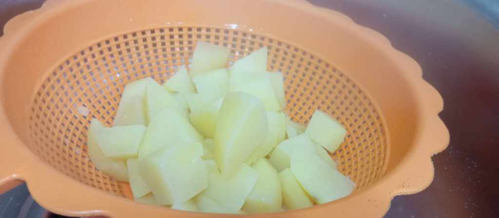 Antes de seleccionar al boss al que nos queremos enfrentar vamos a cocer las patatas para elaborar la masa. Para ello vamos a colocar al fuego un cazo con agua y sal, colocando las patatas cortadas en cachelos y dejando cocer durante unos 15 minutos aproximadamente. Una vez estén blandas, vamos a retirarlas del fuego y las escurriremos con la ayuda de un colador, pasándolas por debajo del grifo para que se enfríen.