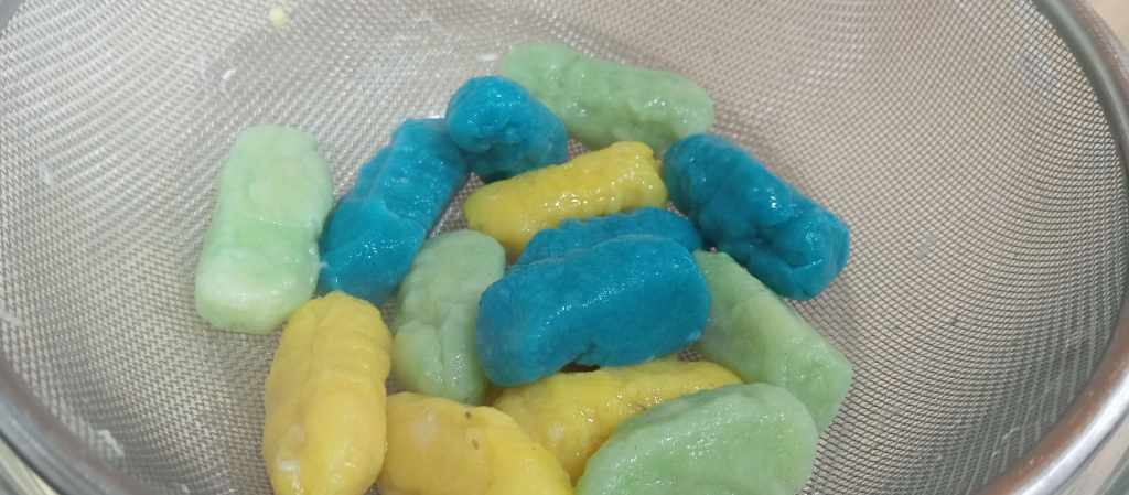 Añadimos los ñoquis al agua hirviendo y veremos que están cocidos cuando estos empiecen a flotar. Retiramos y emplatamos.
