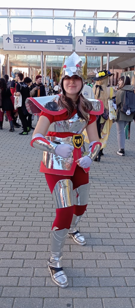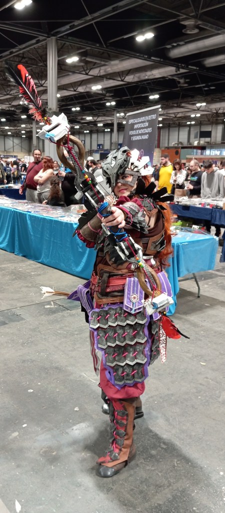 Al no vivir en Madrid tuvimos que viajar hasta allí, lo nos quitó poder disfrutar de la apertura del evento, y sabemos que moverse por ciudades grandes lleva bastante tiempo hasta llegar al destino, por lo que no fue hasta la hora de comer que llegamos al recinto. Tras adquirir nuestros pases de prensa y teniendo la suerte de que no había cola para acceder en ese momento, nos encontramos con el primer traspiés. Como íbamos con bastante hambre y queríamos disfrutar de todas las actividades con energía, decidimos recargar fuerzas, cometiendo el error de llegar a la hora culmen en la que todo el mundo quiere hacer lo mismo y teniendo no muchas opciones para elegir entre lo que ofertaban los “food trucks” y los locales que se encontraban entre los pabellones. Esto nos llevó a tener que esperar durante un rato tanto para poder pedir unas hamburguesas bastante sosas, pero a precio de oro y mucho más andar con ojo avizor para poder comer sentados, que bien es verdad que ya tenemos una edad y eso de comer tirados por cualquier sitio ya nos cuesta. Por eso, os aconsejamos que cuando asistáis a cualquier celebración de este tipo os llevéis en la mochila el bocata o el tupper de turno desde casa, tanto por evitar extensas esperas, como por los precios de la comida, que si bien es verdad no creemos que la organización tenga la culpa de esto si no las propias empresas que se instalan para ofrecer estos servicios. Como punto positivo de este primer traspiés pudimos disfrutar de un improvisado pase de cosplays al ver pasar a bastante gente caracterizada de sus personajes favoritos, tanto de series anime/manga como de videojuegos.
