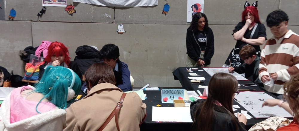 Después de recargar energías decidimos empezar a visitar el pabellón 4 al tenerlo más cerca y hacer la visita de una forma organizada. Nada más entrar pudimos comprobar la organización del sitio gracias al mapa que se mostraba tanto en la web como en el punto de información del pabellón, lugar donde no había nadie para solucionar alguna de las dudas que teníamos pendientes sobre ciertas actividades. Tras pasar como el que llega al patio de casa ajena fuimos viendo varios de los stands que conformaban el pabellón, perteneciendo los primeros a asociaciones íntegramente relacionadas con la cultura japonesa, como el Instituto Kojachi, que realizaban actividades como iniciación a caligrafía japonesa o la elaboración de platos típicos como Gyozas, a la que quisimos apuntarnos, pero ya había espera de participación al tener gente apuntada desde primera hora de la mañana.