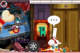 Como buen espíritu que somos, vamos a tener la posibilidad de poseer algunos de los objetos que nos aparecerán en pantalla para conseguir movernos hacia nuestro objetivo, por lo que esto será la base fundamental de la jugabilidad del título. Para conseguir tal fin, vamos a hacer uso de la pantalla táctil y el lápiz de la consola, dando un toque point & click al juego o bien si lo preferimos podemos utilizar la cruceta para realizar la misma función. Una vez nos pongamos en marcha, vamos a movernos seleccionando cualquiera de los puntos de luz que nos señalan los objetos en el mundo fantasma, eligiendo principalmente los más cercanos y en algunos momentos poder utilizar estos ítems para alcanzar otros que nos queden más lejanos al utilizar los trucos fantasmas para tal uso (de ahí el nombre del juego), como por ejemplo, abrir una sombrilla para alzarnos hacia arriba y poder alcanzar una plataforma o utilizar el entorno para llamar la atención de otros personajes, pudiendo de esta manera desencadenar una serie de eventos.