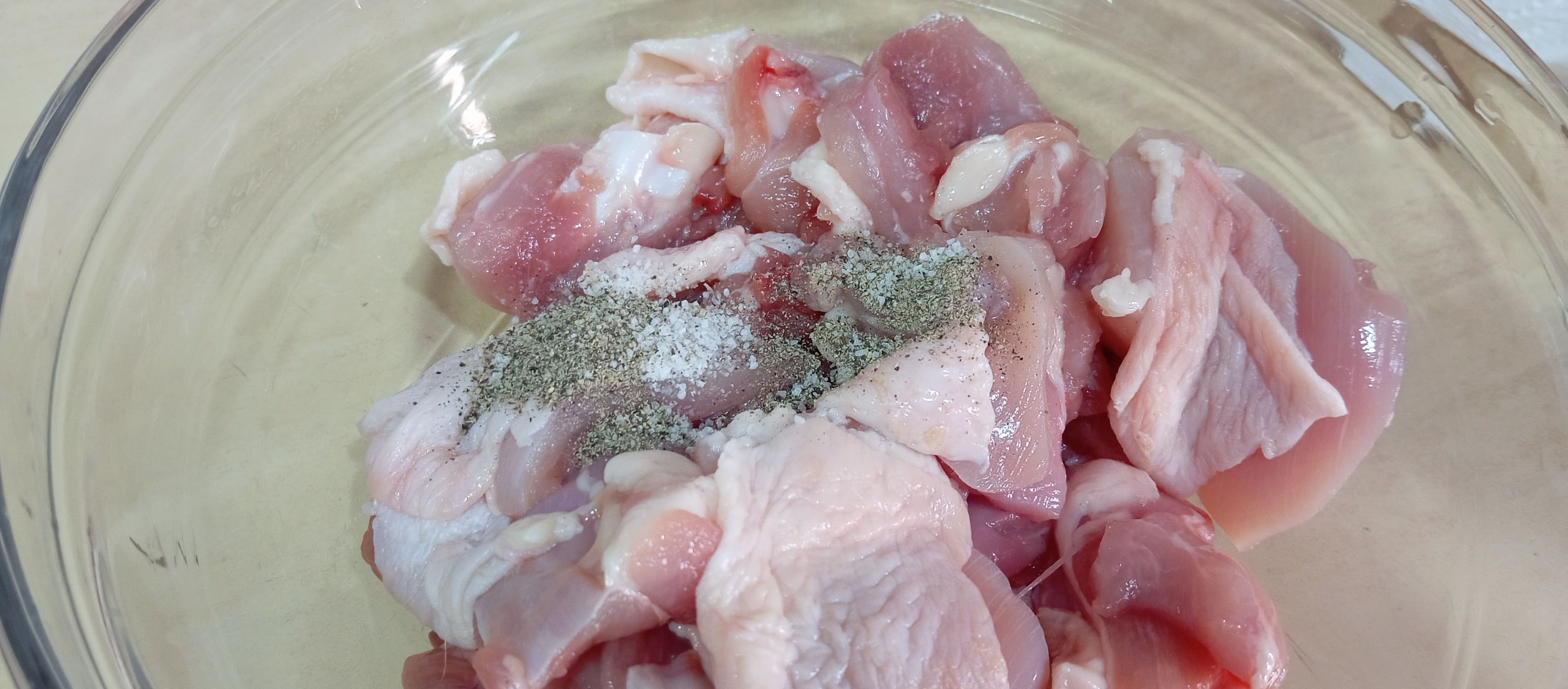 Primero, vamos a cortar el pollo en trozos de bocado. Ahora lo vamos a poner en un bol con el la sal y la pimienta al gusto, el jengibre fresco rallado, la soja y el ajo en polvo. Removemos bien para que se integren todos los ingredientes, filmamos y lo dejamos reposar en la nevera durante media hora.