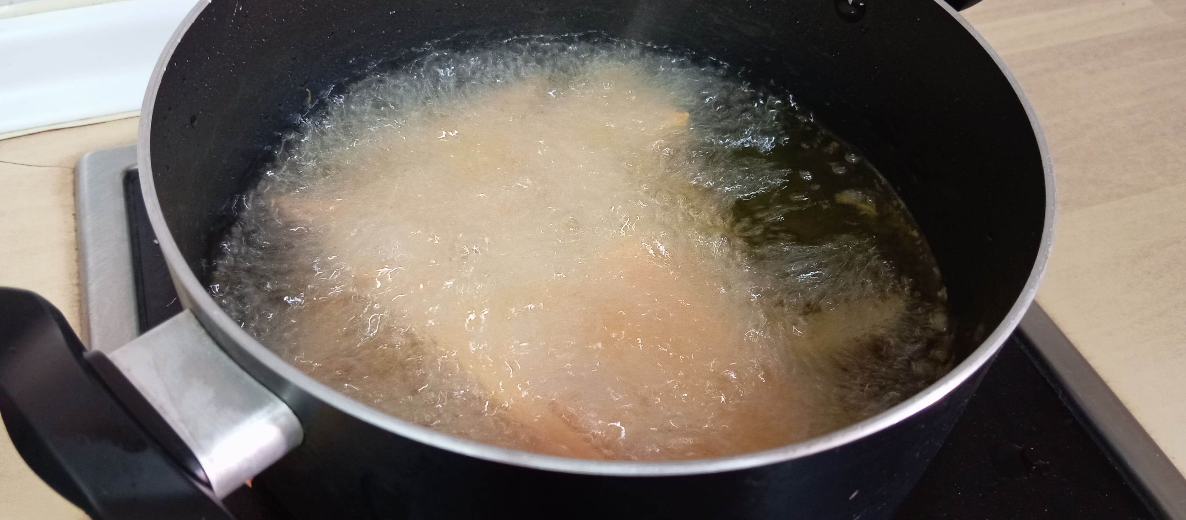 Pasamos todas las tandas que sean necesarias y a continuación volvemos a subir el fuego para introducir las primeras piezas fritas, dando una segunda fritura que las dejará crujientes.