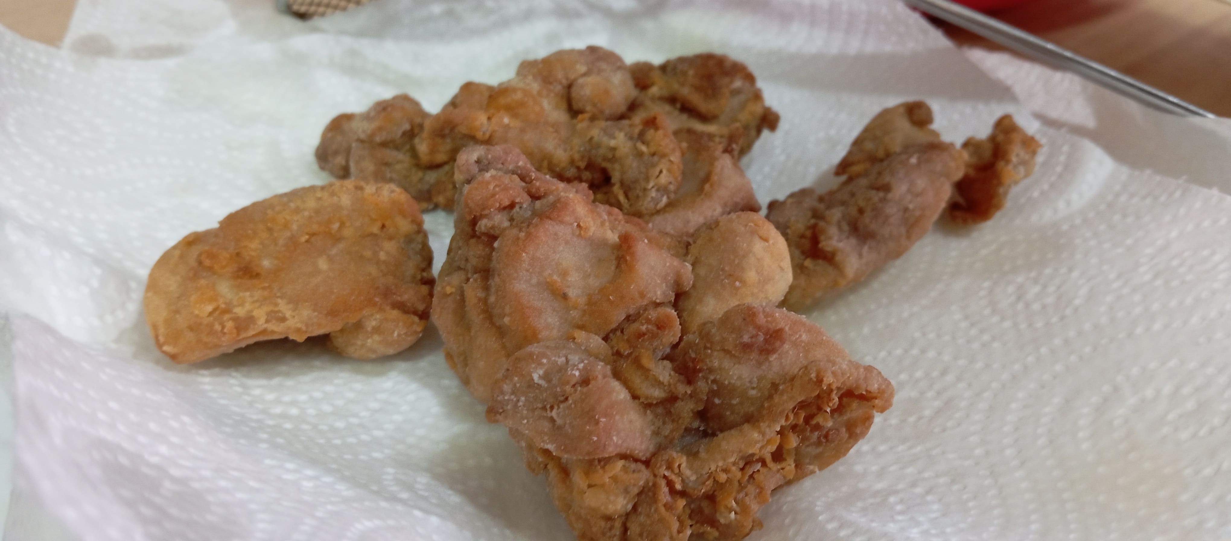 En ese mismo aceite vamos a freír el pollo en varias tandas, empezando a temperatura media/alta y procurando que esta no baje demasiado al introducir una nueva tanda. Retiramos el pollo cuando este tenga un tono dorado y ponemos en papel absorbente para retirar el exceso de aceite.