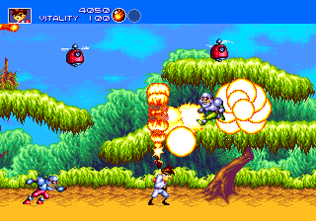 Sí, hablamos de un título que nació a partir de la decisión de unos exempleados de Konami de fundar una nueva desarrolladora a la que conocimos finalmente como Treasure y regalándonos allá por el año 1993 un grandioso videojuego del género Run & Gun que se coronó como uno de los mejores títulos dentro del catálogo de ese maquinote llamado Megadrive. Con el paso del tiempo también lo hemos podido disfrutar en la versión mini de esta máquina como bien hemos dicho al principio del post, en su versión portátil comepilas y ochobitera para Game Gear y desarrollado por M2 con algunos cambios importantes dentro del juego, en la línea de Sega de 3D Classics para Nintendo 3DS, en formato recopilatorio con otros títulos desarrollados por la empresa para Playstation 2 dentro de la serie Sega Ages 2500 y como juegos descargable dentro de las diferentes tiendas digitales de consolas como Xbox 360, Playstation 3, Wii, Switch y PC.  Además, pudimos también disfrutar de una continuación años después para Game Boy Advance añadiendo al título la coletilla de Heroes.