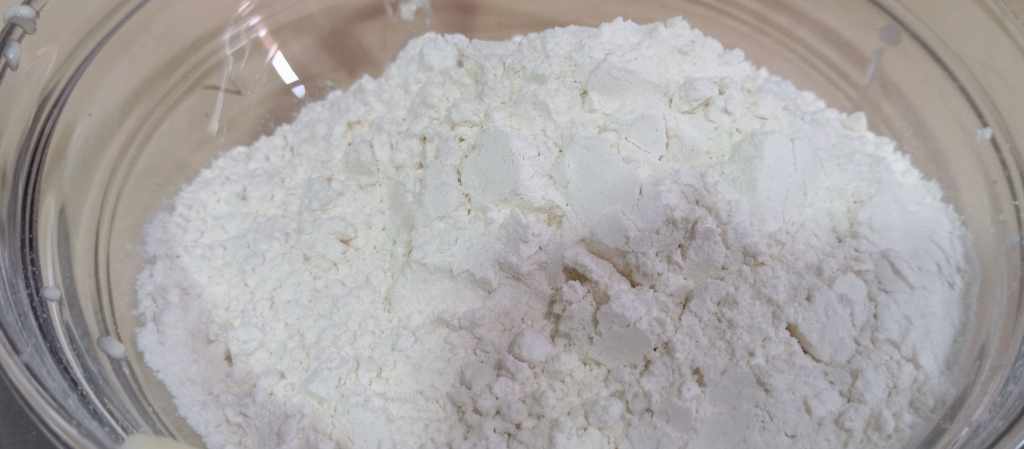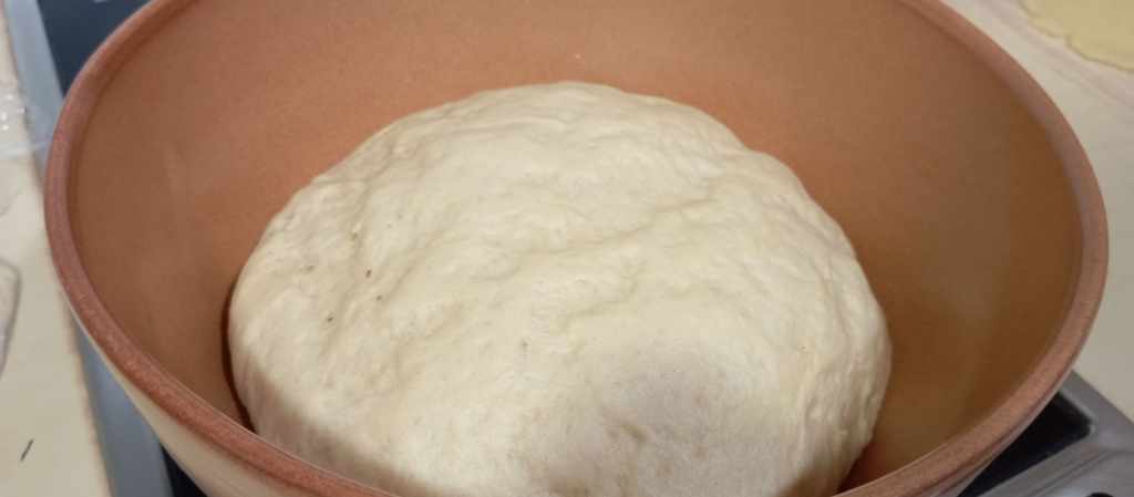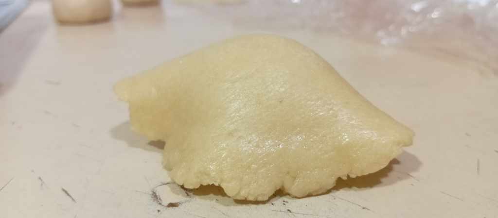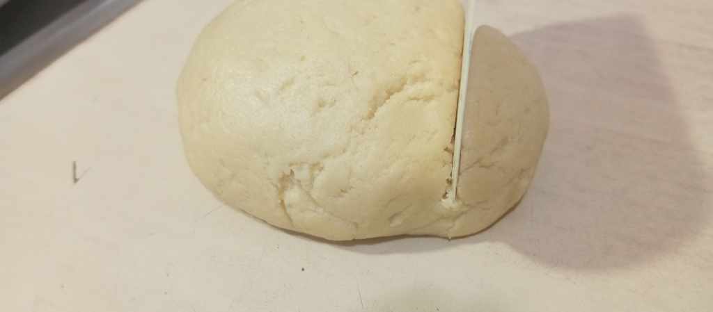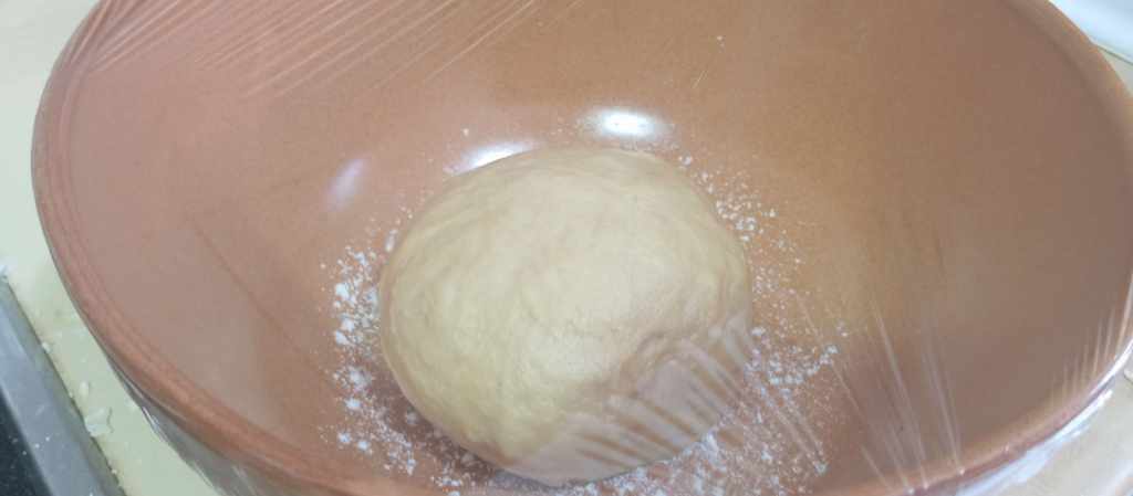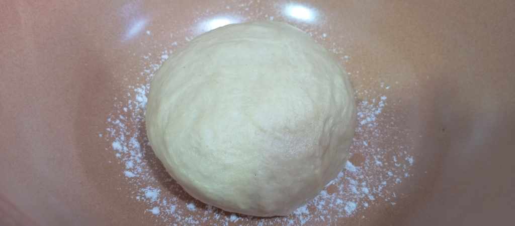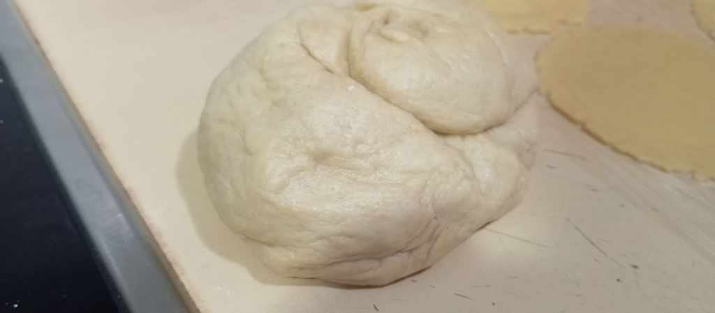 Retiramos la masa del bol y la sacamos a una superficie limpia en la que pondremos un poco de harina de trigo para que al manejar la masa se nos pegue lo menos posible. Ahora, vamos a dividirla en 10 piezas de unos 42 grs aproximadamente o que queden lo más parecidas posible en cuanto a tamaño se refiere.