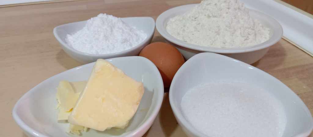 Nos tocará esperar hasta que pase una hora y media de esa fermentación para ir preparando la masa exterior. Para ello vamos a mezclar en otro bol la mantequilla empomada, el azúcar glas, el huevo, la harina de repostería y la levadura en polvo. Removemos bien todo el conjunto para que se integren los ingredientes y tengamos una masa consistente.