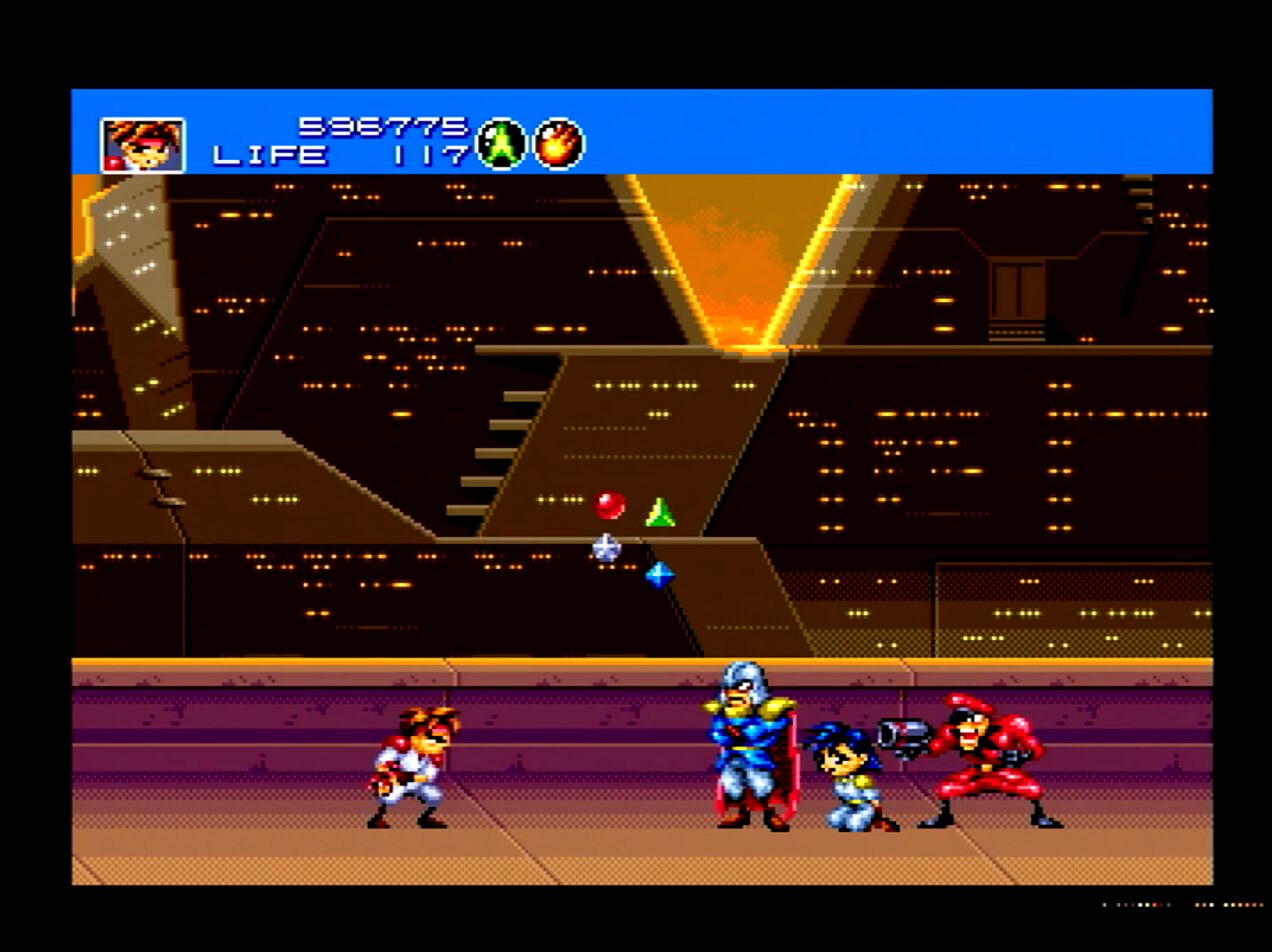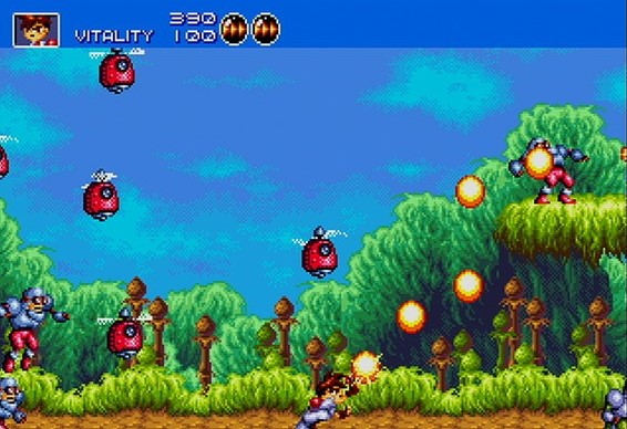 Sí, hablamos de un título que nació a partir de la decisión de unos exempleados de Konami de fundar una nueva desarrolladora a la que conocimos finalmente como Treasure y regalándonos allá por el año 1993 un grandioso videojuego del género Run & Gun que se coronó como uno de los mejores títulos dentro del catálogo de ese maquinote llamado Megadrive. Con el paso del tiempo también lo hemos podido disfrutar en la versión mini de esta máquina como bien hemos dicho al principio del post, en su versión portátil comepilas y ochobitera para Game Gear y desarrollado por M2 con algunos cambios importantes dentro del juego, en la línea de Sega de 3D Classics para Nintendo 3DS, en formato recopilatorio con otros títulos desarrollados por la empresa para Playstation 2 dentro de la serie Sega Ages 2500 y como juegos descargable dentro de las diferentes tiendas digitales de consolas como Xbox 360, Playstation 3, Wii, Switch y PC.  Además, pudimos también disfrutar de una continuación años después para Game Boy Advance añadiendo al título la coletilla de Heroes.