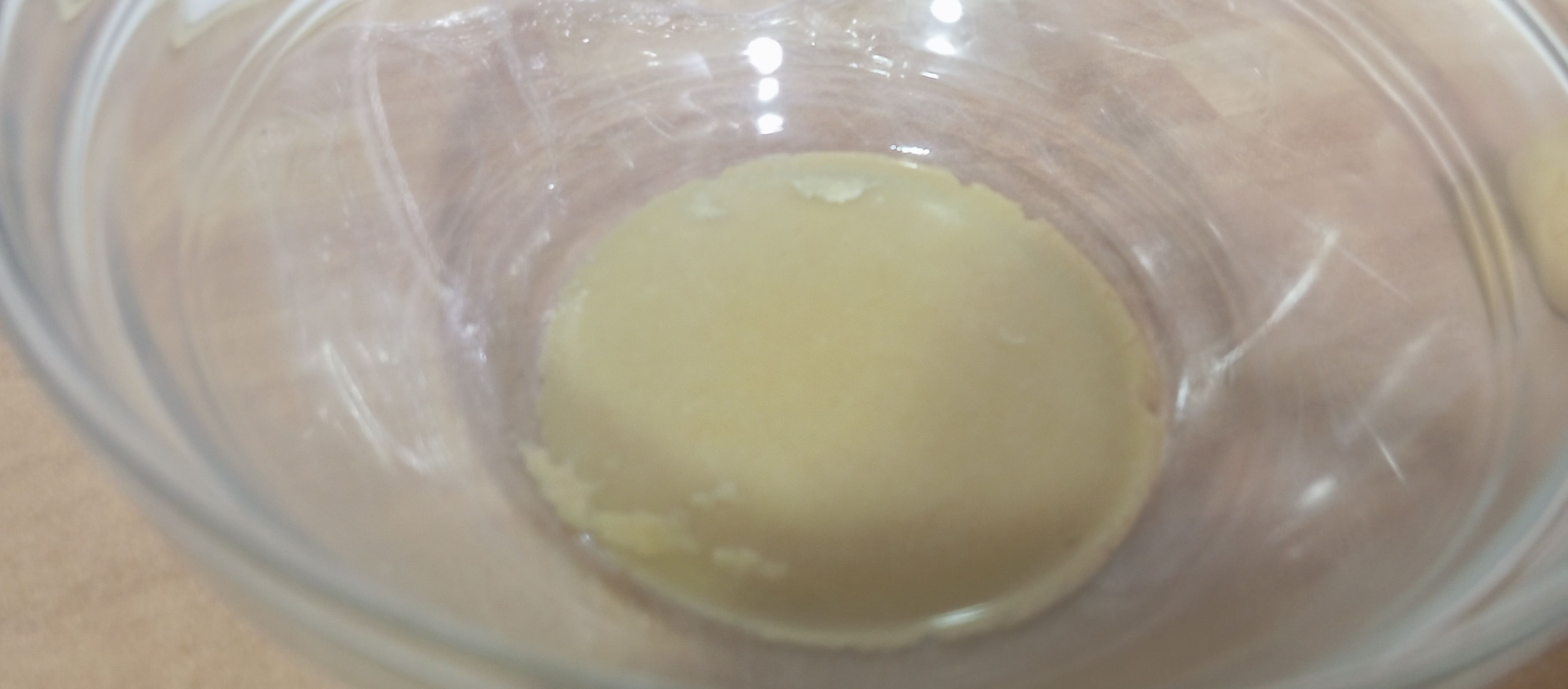 Nos tocará esperar hasta que pase una hora y media de esa fermentación para ir preparando la masa exterior. Para ello vamos a mezclar en otro bol la mantequilla empomada, el azúcar glas, el huevo, la harina de repostería y la levadura en polvo. Removemos bien todo el conjunto para que se integren los ingredientes y tengamos una masa consistente.