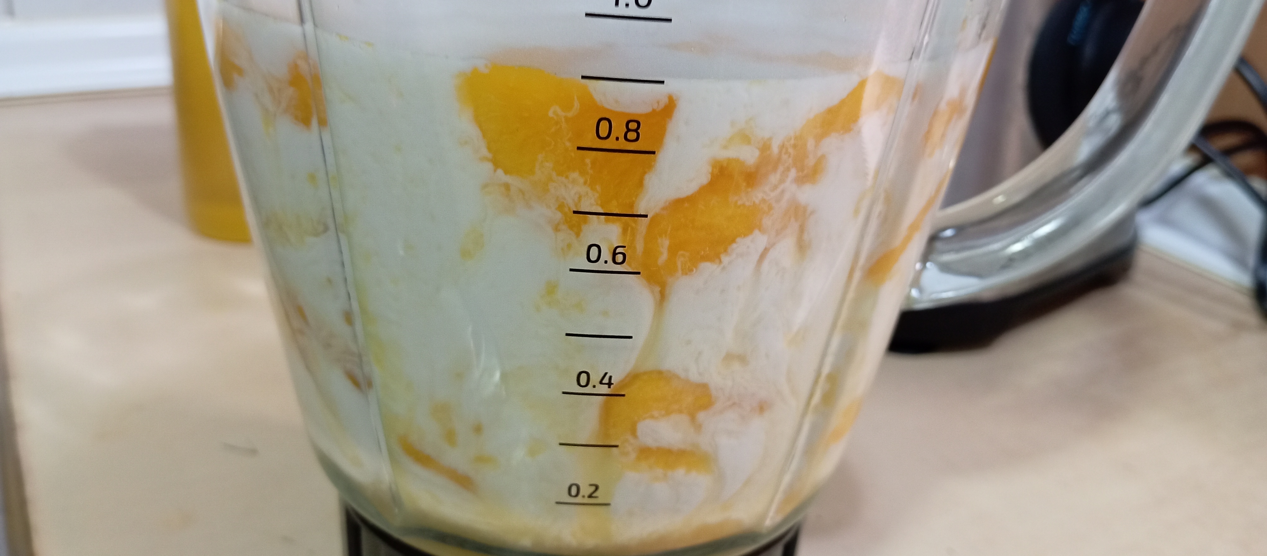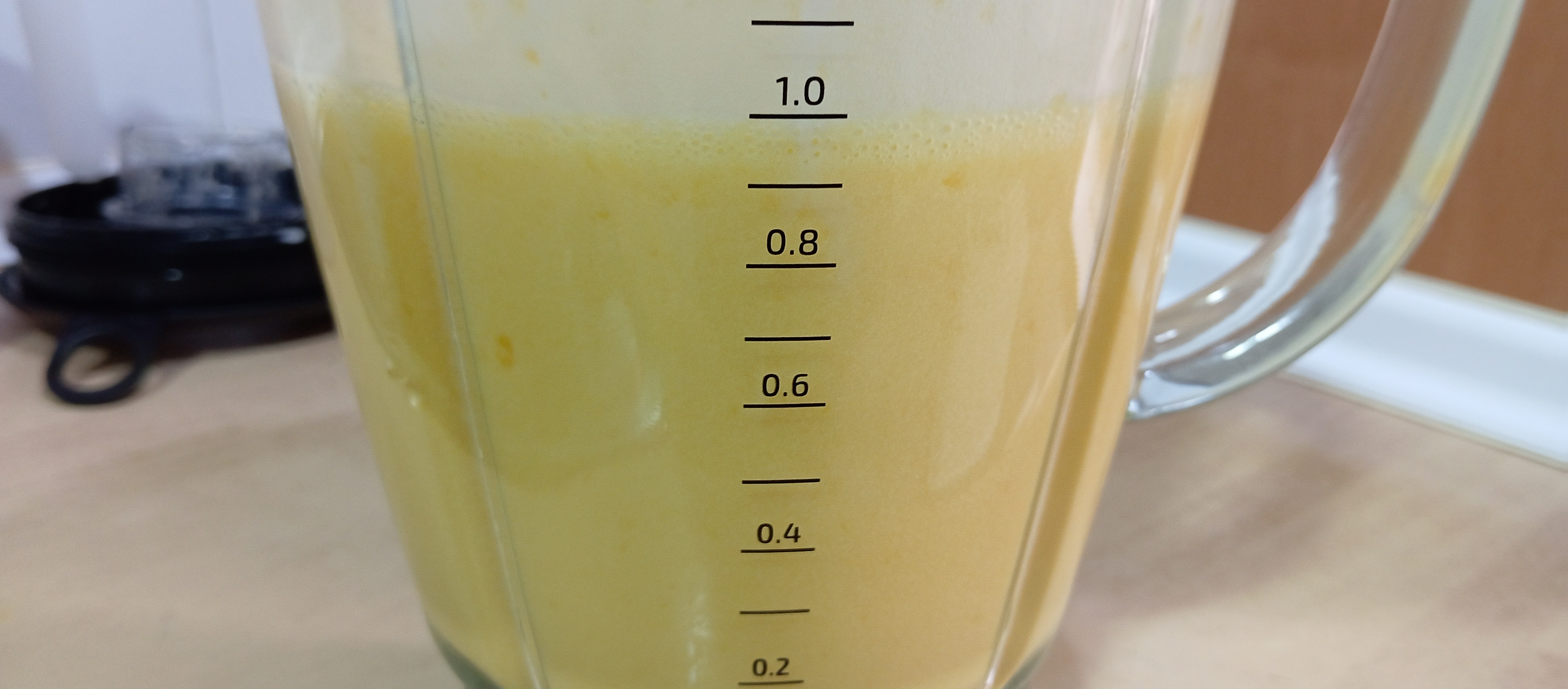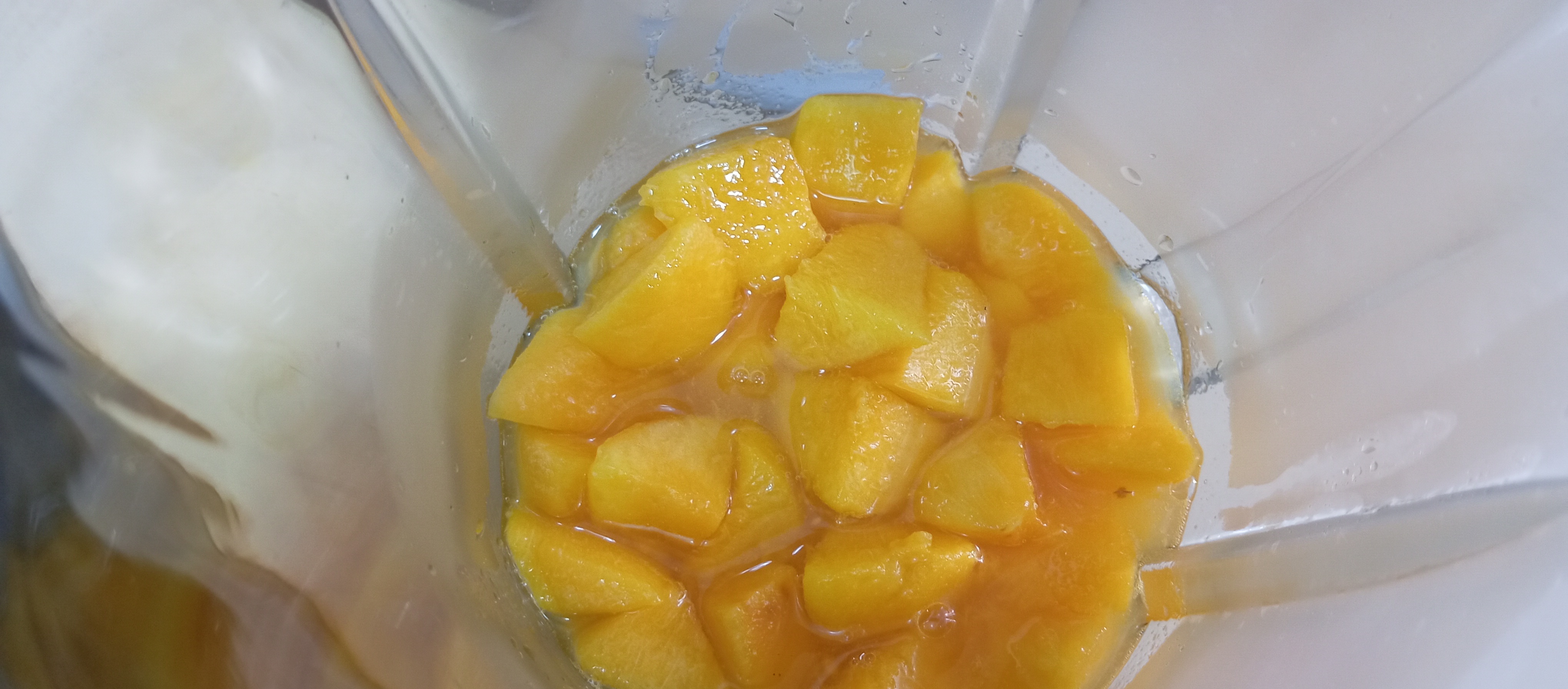 Ahora con la ayuda de una batidora o la licuadora que tengamos por casa, vamos a añadir con cuidado los melocotones pues aún podrían quemar y estas quemaduras duelen muchísimo más que cualquier golpe de las quimeras del juego.