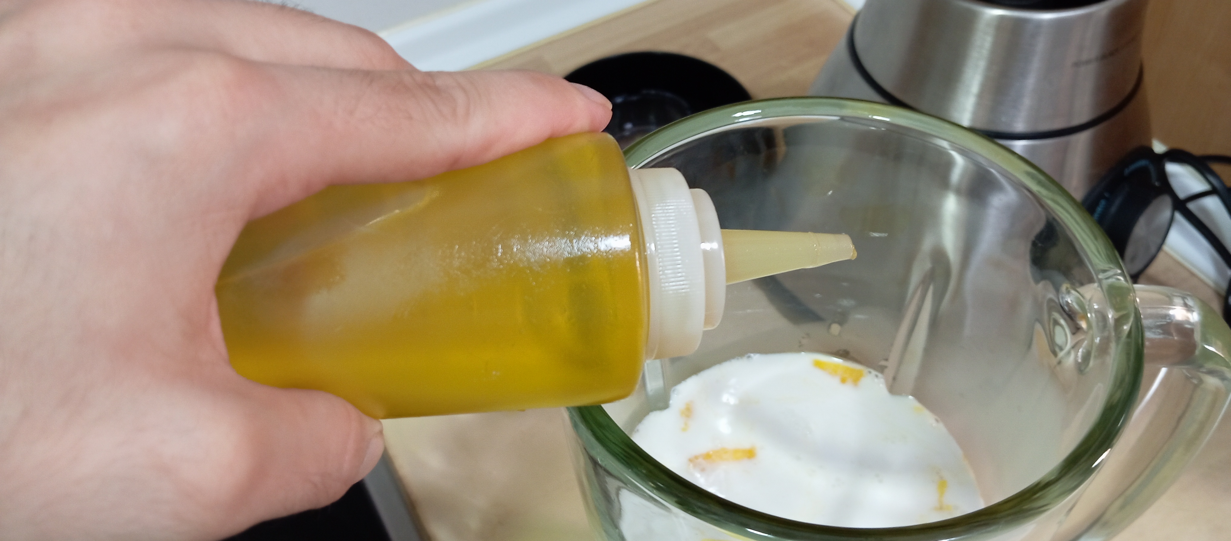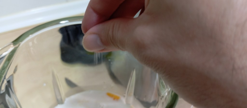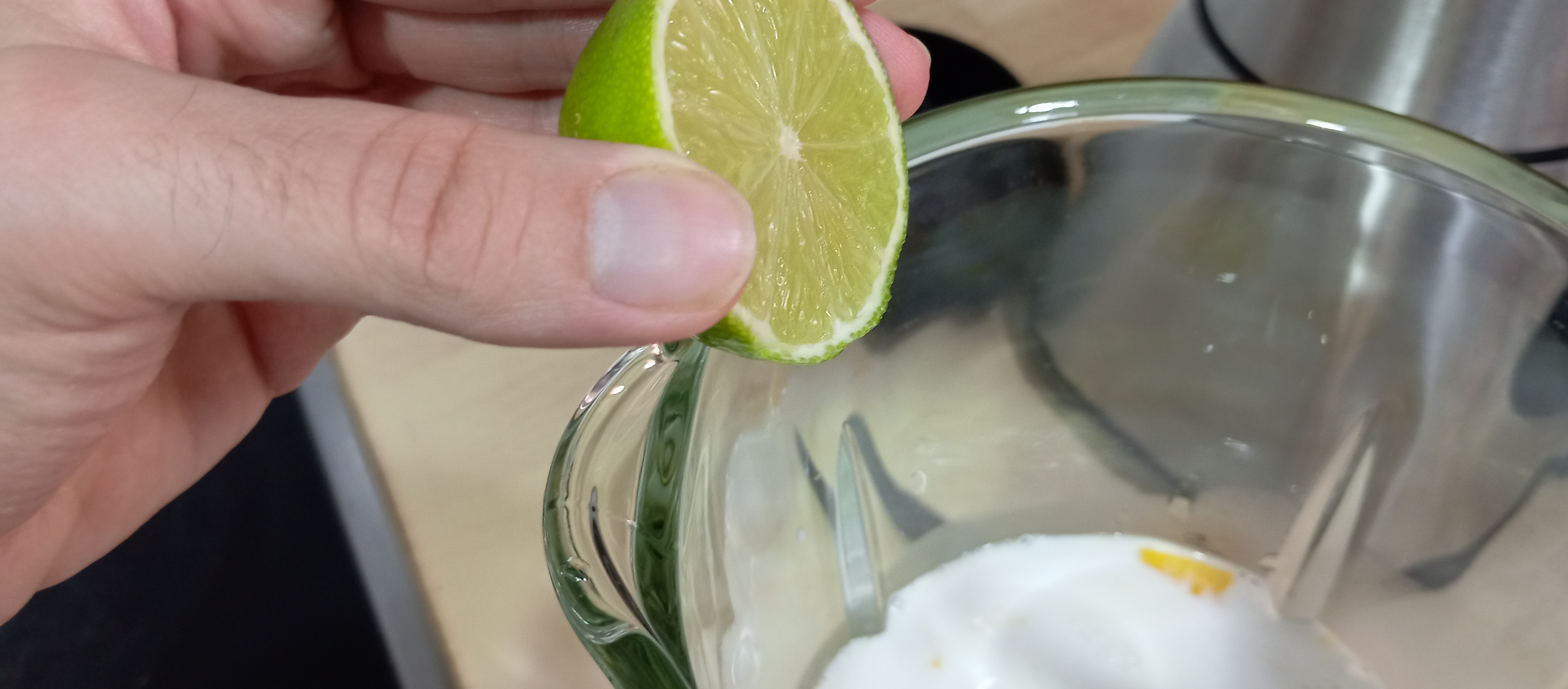 Añadimos ahora la leche de coco, un chorrito de zumo de la lima, una pizquita de sal y un poquito de aceite de oliva.