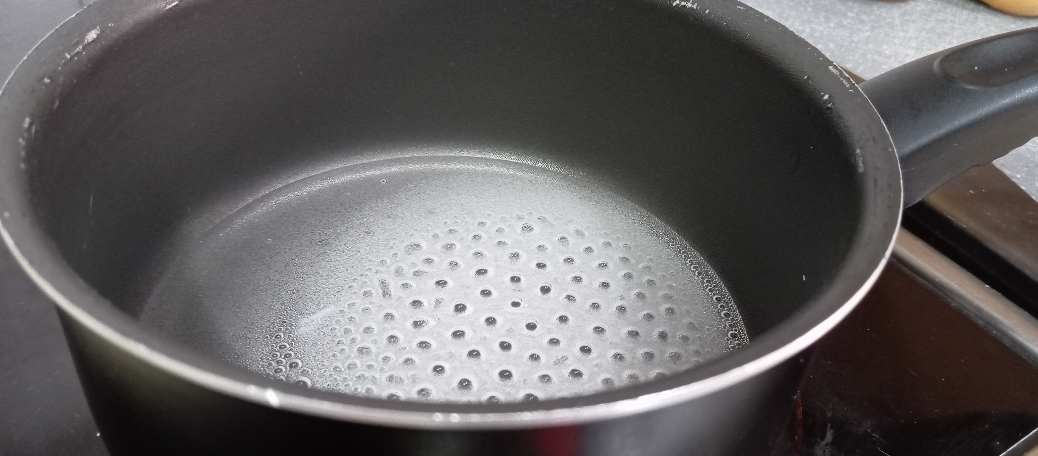 Lo primero que vamos a hacer será preparar un almíbar suave con el agua y el azúcar. Para ello vamos a colocar los dos ingredientes en un cazo mediano que pondremos a fuego medio hasta que el azúcar se disuelva por completo. Una vez lo haya hecho lo retiraremos del fuego, reservándolo.