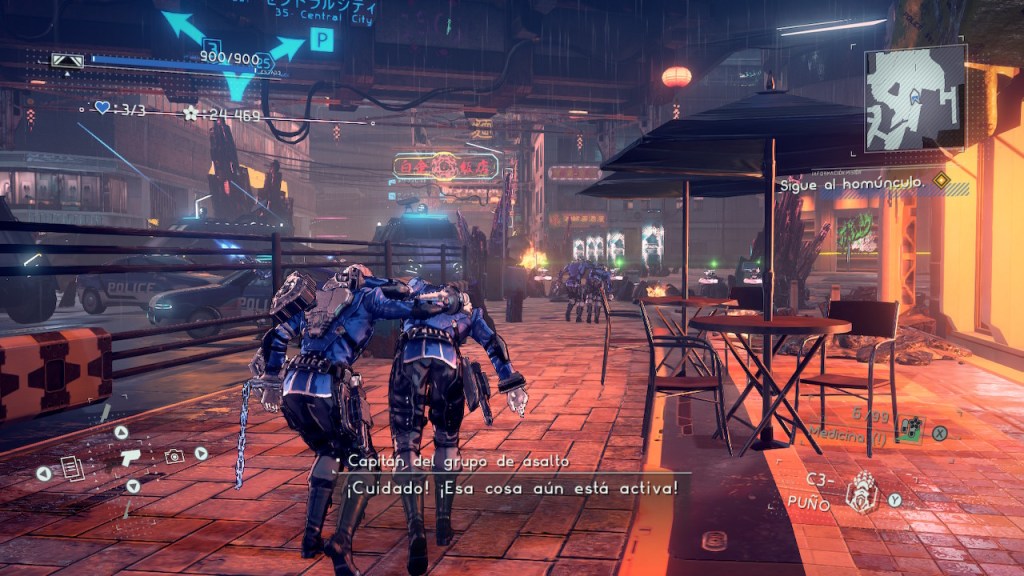 Pero como no solo de combates vive cualquier agente de la ley vamos a tener que ganarnos el jornal doblado el lomo, teniendo que empezar siendo cadetes e ir escalando puestos para convertirnos en inspectores de renombre. Esto no te lo van a dar por la cara, que no estamos en España, por lo que deberemos en varias partes de las misiones recolectar información para llegar al culmen del asunto y resolver el caso de turno que nos permita averiguar que se cuece en el nivel que tengamos que completar hasta llegar al combate de turno. Por ello nos vamos a encontrar con bastantes puzles ambientales que deberemos completar con el Legión de turno, ya que más allá de ser un arma de matar también serán la llave para resolver estos rompecabezas. Así, vamos a poder utilizarlos para desplazar objetos pesados que nos impidan el paso, hackear sistemas y permitirnos saltar entre plataformas al indicar donde queremos hacerlo, por lo que ríete tú de las navajas suizas teniendo un bicho de estos encadenados a tu muñeca.