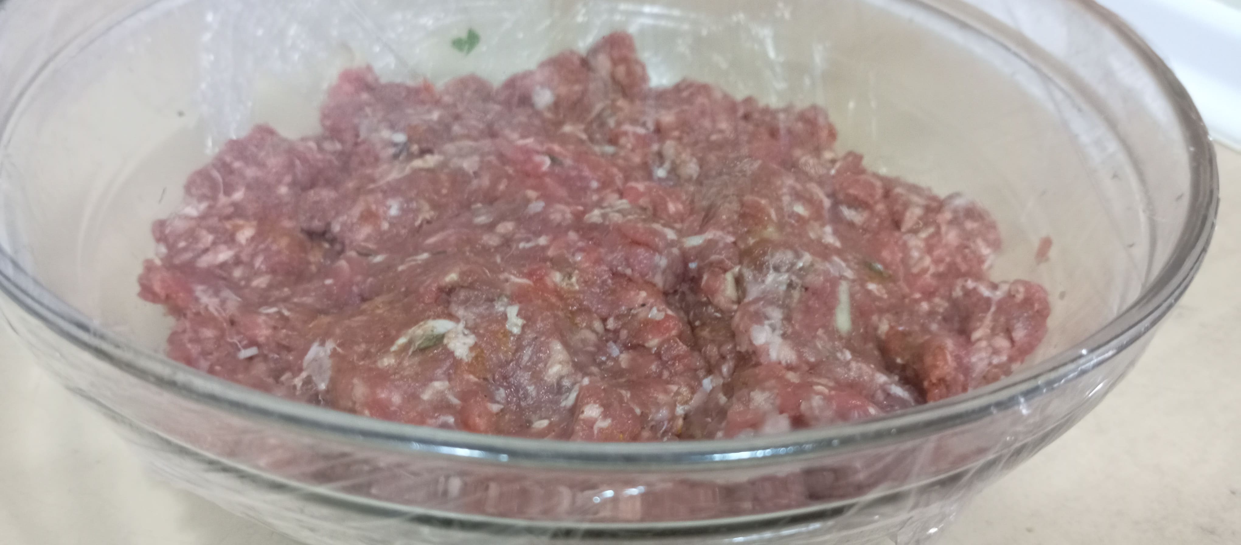 Lo primero que vamos a empezar a elaborar será la carne. Para ello vamos a picar bien el diente de ajo, las hojas de cilantro y vamos añadirla a esta en un bol removiendo bien y añadiendo todas las especias a continuación para que se mezclen bien todos los ingredientes. Ahora, vamos a tapar la fuente con papel film y la vamos a introducir en la nevera donde la dejaremos macerar y/o reposar durante 24 horas para que podamos manejarla bien, aunque si tenéis hambre, prisa o queréis resolver, pero ya cualquier puzle del juego en el que estéis inmersos con dos horas de maceración también podéis elaborar el plato.