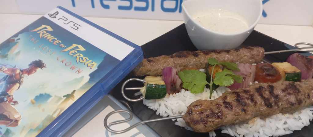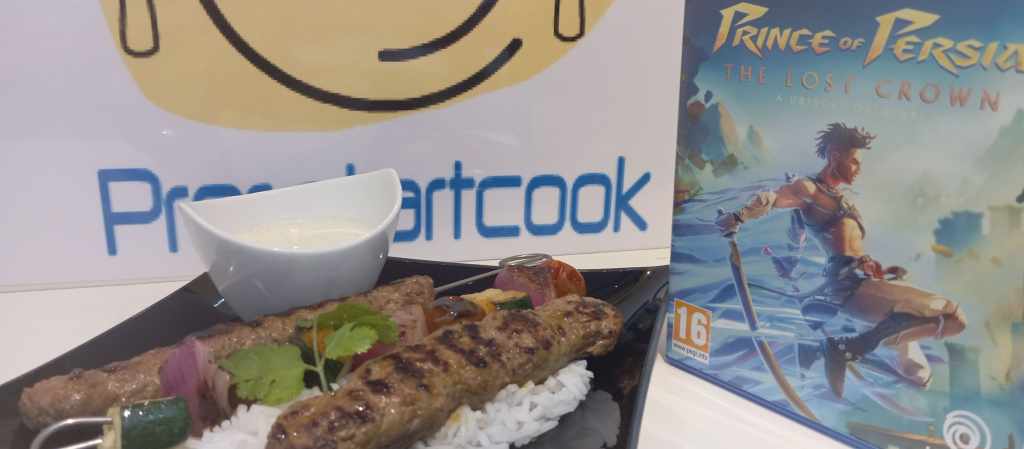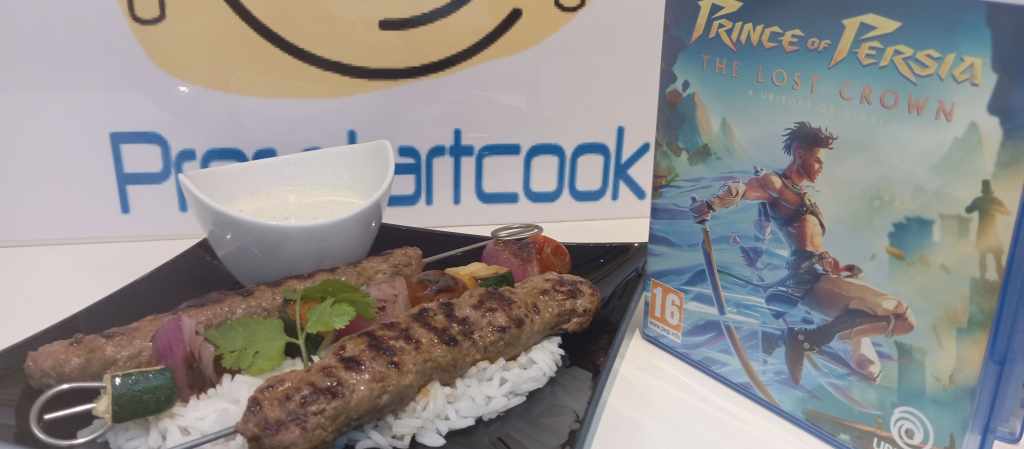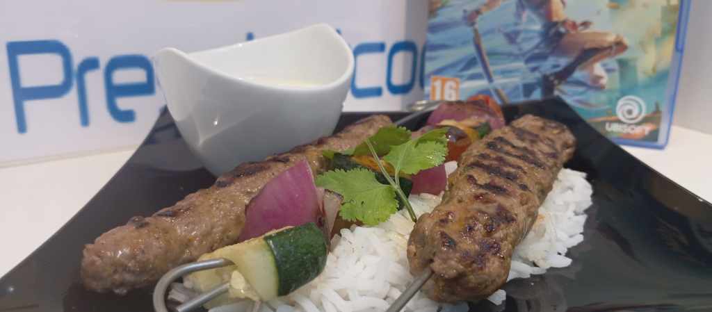 Ahora nos lo has puesto un poquito difícil para poder añadir algo más de calidad a este post por medio de una nueva receta con la que poder hacer homenaje a este gran videojuego. Para ello nos ha tocado arremangarnos, saltar las plataformas más difíciles e ir hasta la lejana Persia para adaptar   a nuestra manera una elaboración típica de esta mágica tierra como es el Chelo Kebab, un plato combinado de carne picada, que bien puede ser de cordero o ternera, aunque podéis utilizar la que más os guste, aderezado de varias y ricas especias y acompañado de unas buenas verduras asadas y un buen arroz basmati con el que aromatizar el plato con una buena guarnición.
