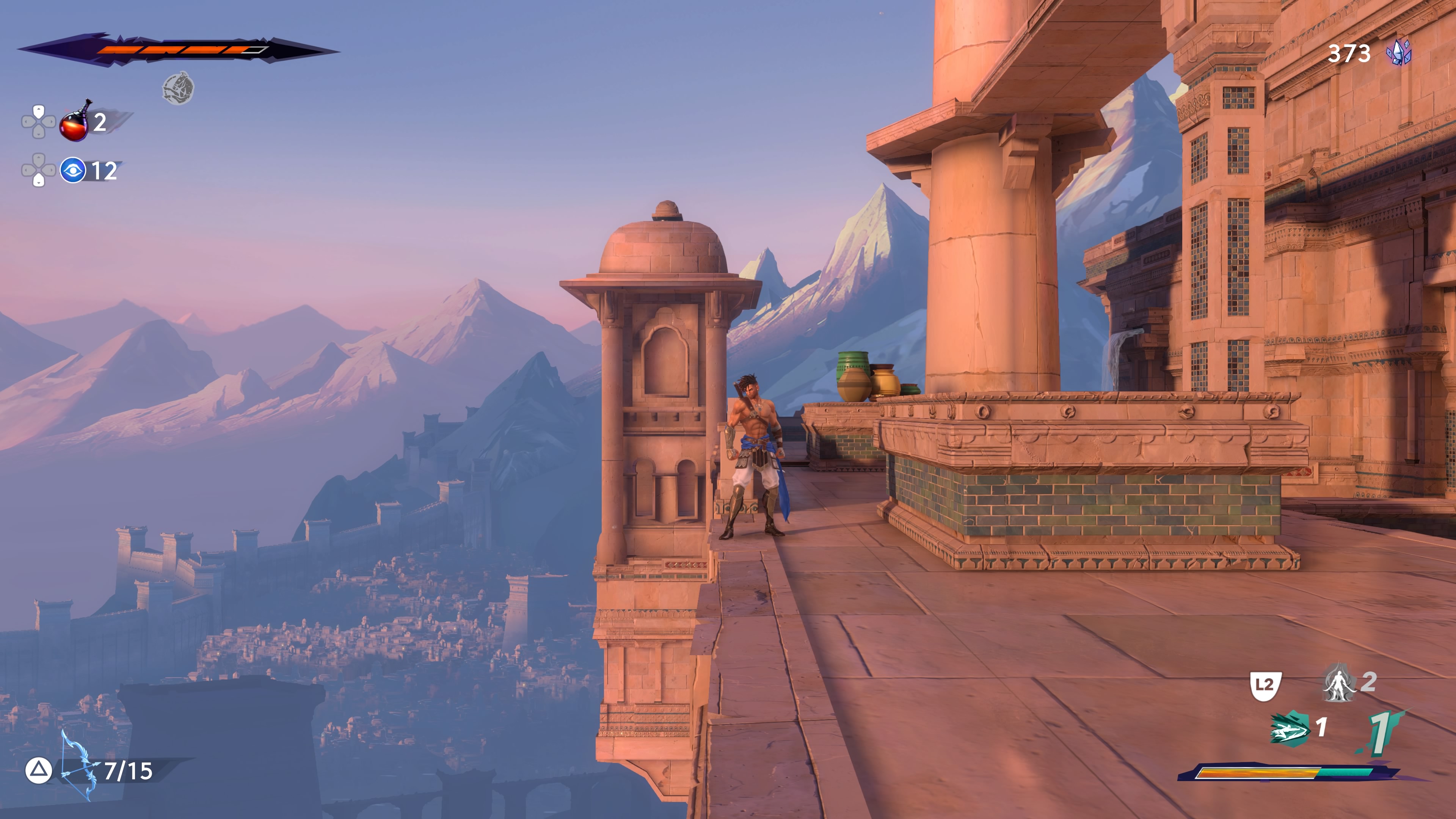 Asumido este bache, la verdadera revolución de «Prince of Persia The Lost Crown´´ es interna respecto a lo establecido por la propia Ubisoft durante estos años, ya que devuelve a la saga al scroll lateral, integrando las plataformas y combates marca de la casa en el género del metroidvania. Una fórmula de éxito que otras sagas más recientes han asentado en la última década, y que The Lost Crown hace suya a las mil maravillas: el desbloqueo escalonado de habilidades, los obstáculos insalvables a los que volveremos horas después cuando las tengamos, el mapa laberíntico y ramificado, o las secundarias desperdigadas por el mismo, y añade la característica genuina de «los fragmentos de memoria»: ¿No sabes cómo alcanzar ese cofre que está a la vista, pero totalmente inaccesible? Hazle una captura a lo que se ve en pantalla, quedando marcada en el mapa, y la podrás consultar siempre que lo necesites o eliminar una vez hayas conseguido lo que querías en ese lugar.