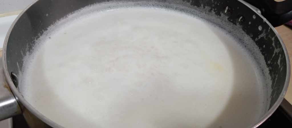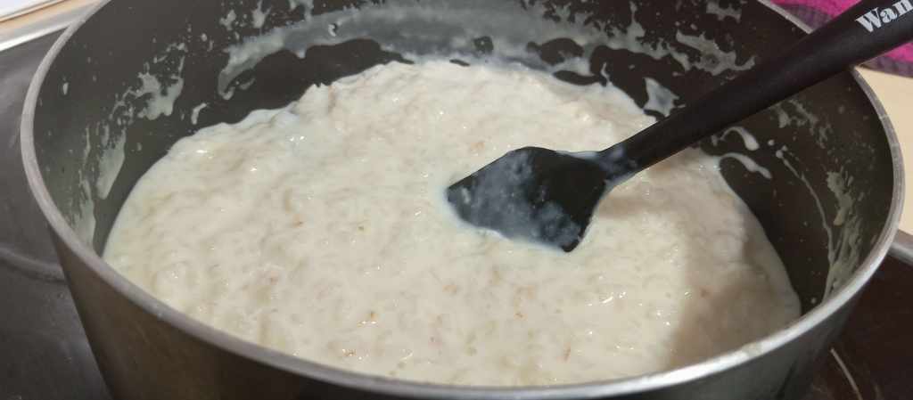 Una vez que el arroz esté listo, retiramos el cazo del fuego y vamos a dejarlo enfriar completamente antes de rellenar los pasteles.