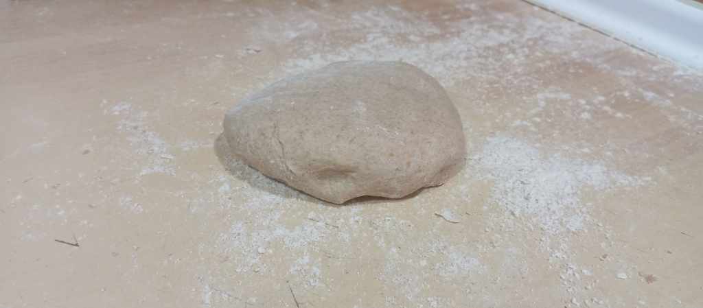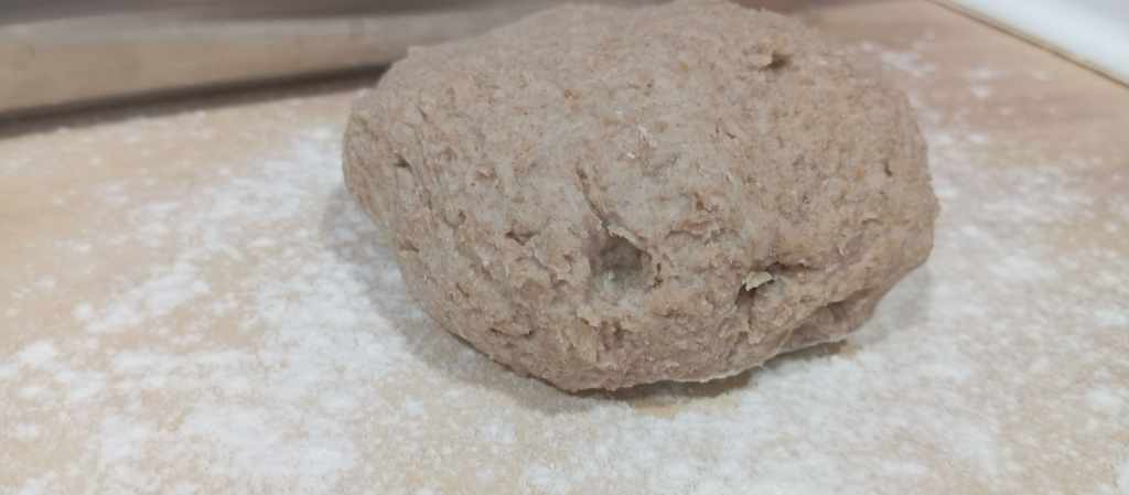 Continuamos trabajando la masa con las manos hasta obtener una masa firme y algo pegajosa. Una vez que la obtengamos vamos a envolverla en papel film dejándola reposar durante unos minutos.
