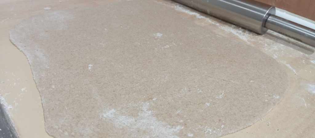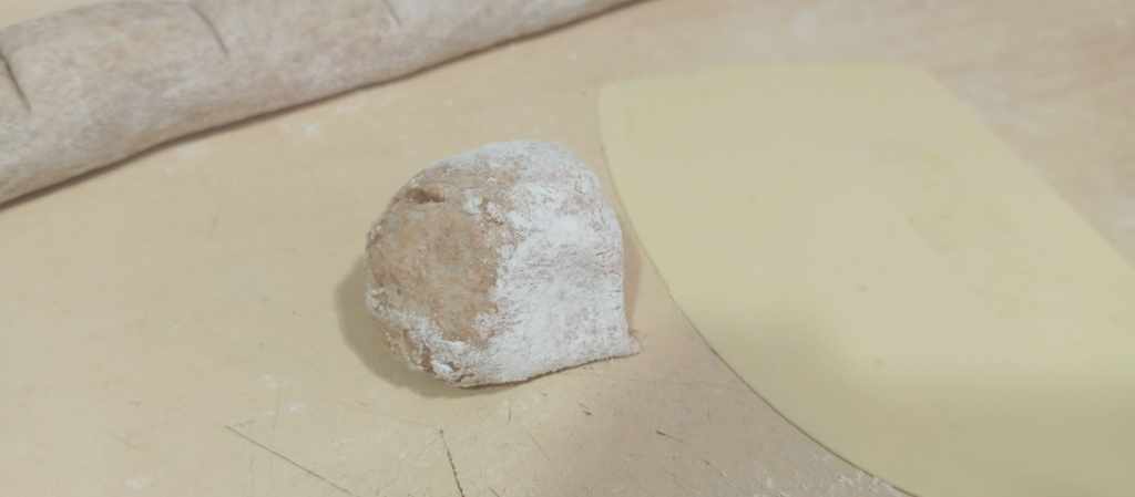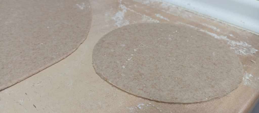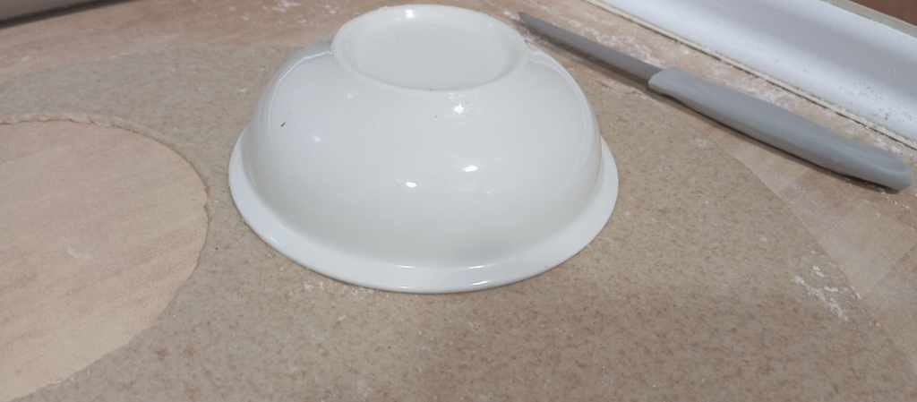 Cuando hayan pasado unos minutos y al igual que en el juego vamos a poder optar por dos opciones: Una será formar un cilindro con ella de unos 3 cm de diámetro aproximadamente y justamente después con la ayuda de una rasqueta vamos a cortarla en unas 8-10 porciones más o menos iguales que estiraremos después con ayuda de un rodillo hasta lograr discos de un grosor muy fino y obtener así una pieza de unos 15 cms. O bien podemos optar por estirar de una vez la masa para luego con ayuda de moldes del mismo diámetro podamos cortar la masa y obtener las piezas. Eso ya a vuestra libre elección, de como de duchos seáis a la hora de manejar el rodillo o el espacio que tengáis en la encimera para elaborar y manejar la masa ¡Eso sí, no olvidéis espolvorear algo de harina encima de esta para manipular mejor la masa!