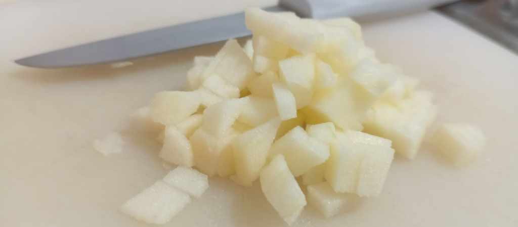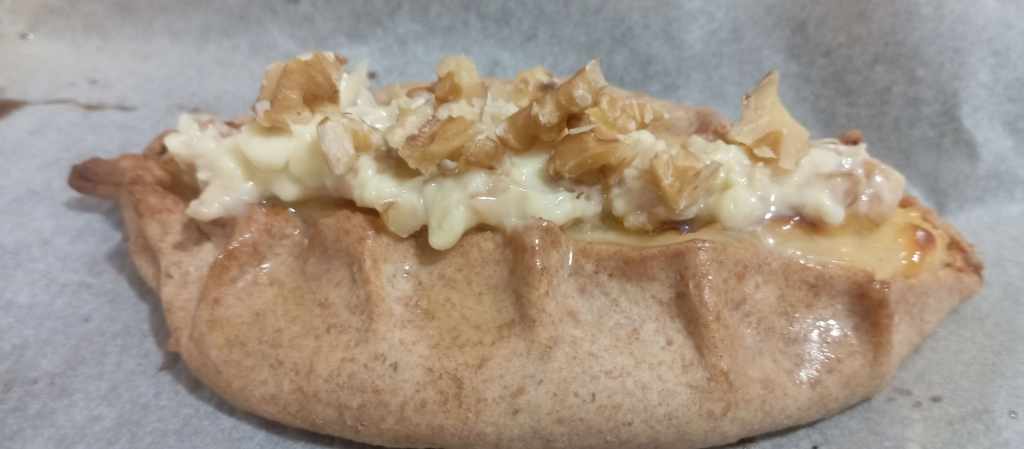 Una vez horneados los vamos a dejar templar y vamos a decorar por encima como queramos, bien con la manzana picada mezclada con los 60 grs de mantequilla empomada, con frutos secos picados o bien con la mezcla original que se utiliza en la receta, que es una mantequilla con huevo cocido que podéis poner pon encima si os gusta o no sois intolerantes como nosotros.