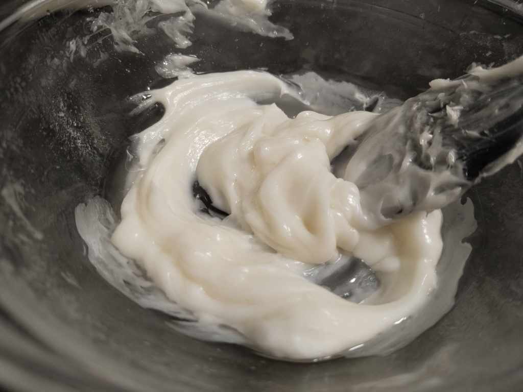 Lo primero que vamos a hacer es dejar la manteca a temperatura ambiente para, acto seguido, mezclarla con el vino blanco. Para ello vamos a ir añadiéndolo poco a poco e iremos batiéndola hasta que la mezcla esté cremosa.