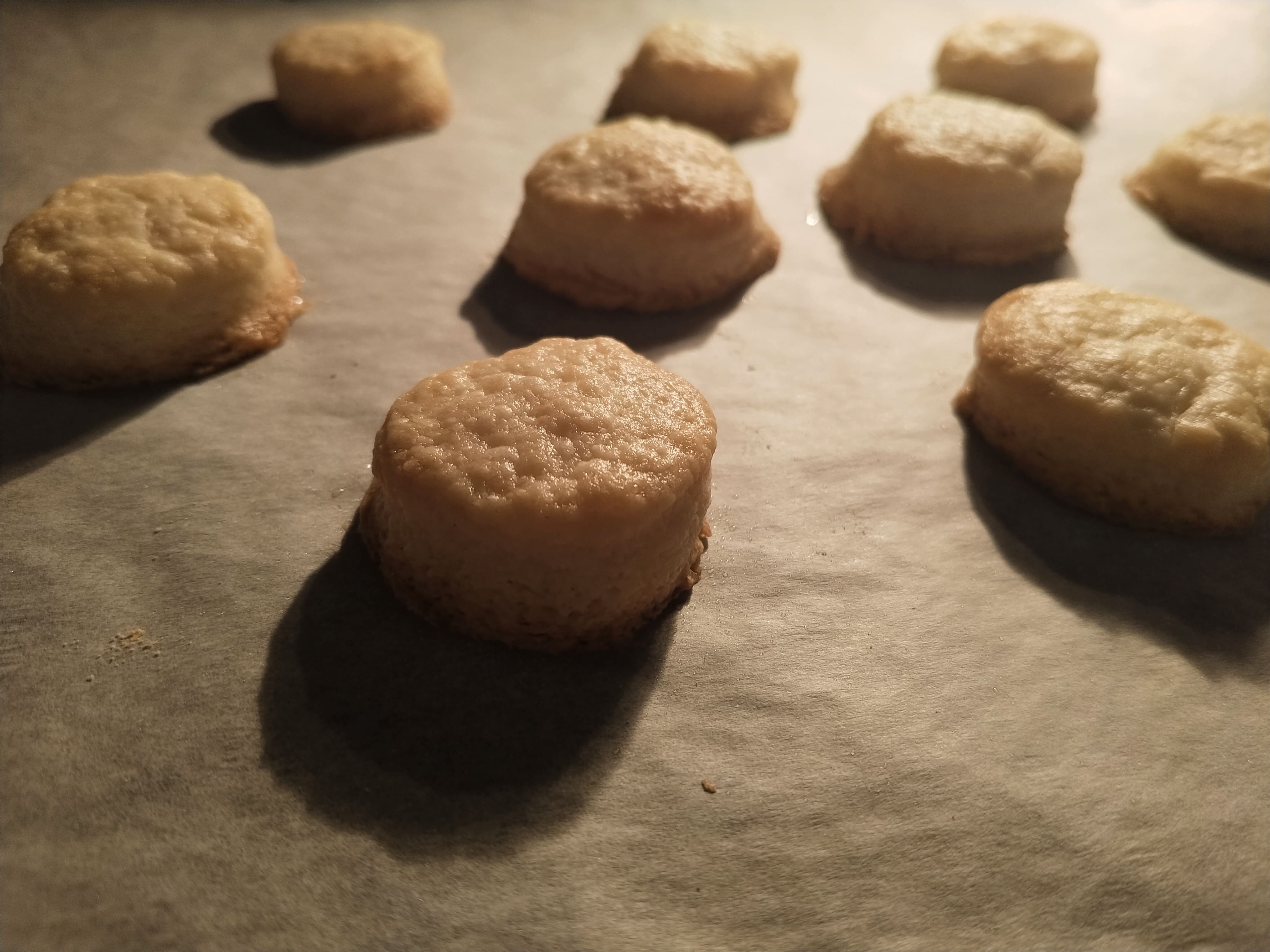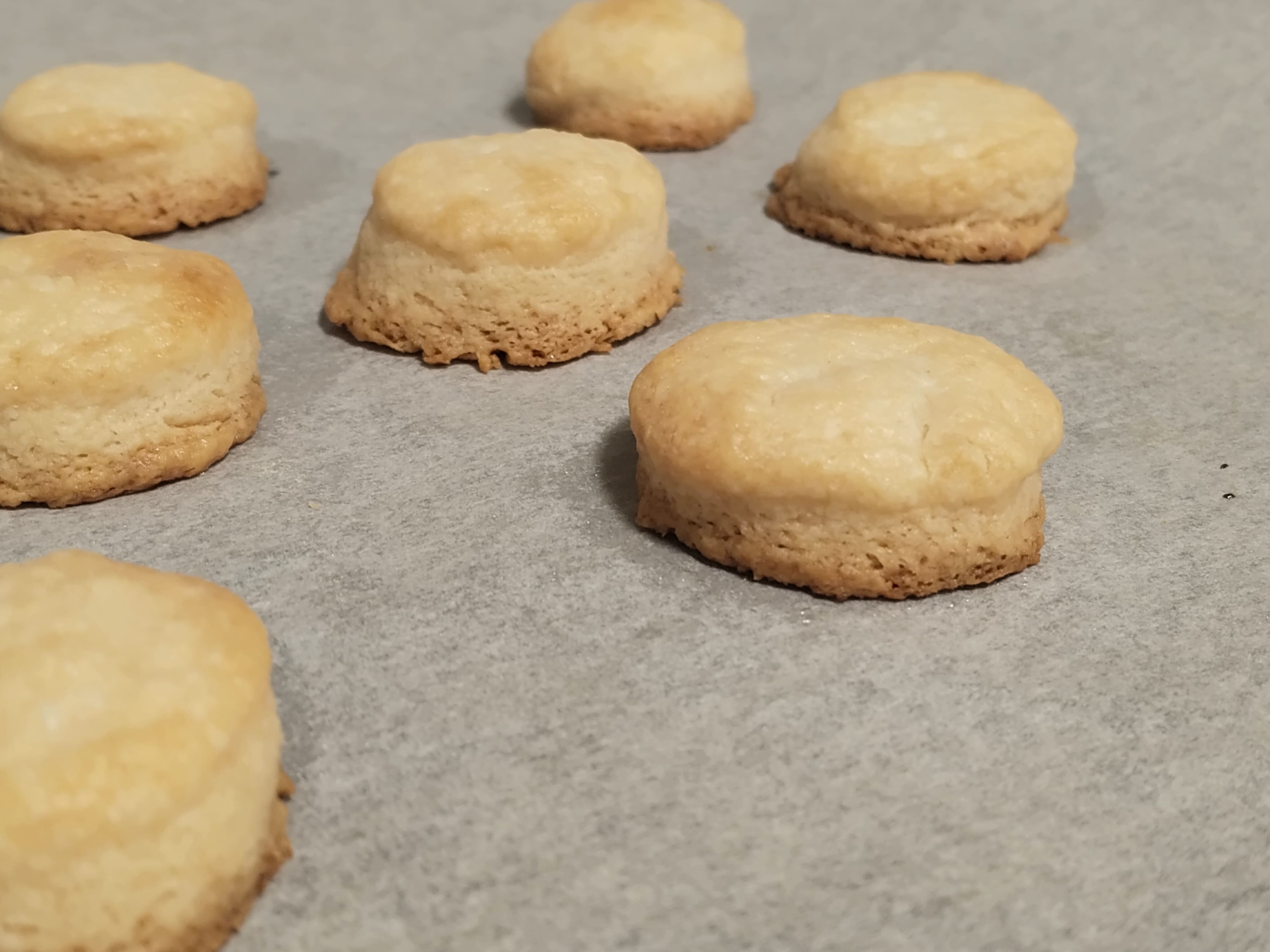 Los vamos a colocar con cuidado en una bandeja con papel de horno y los vamos a hornear a 180 °C (calor arriba y abajo) durante 20 minutos, sin que se doren demasiado. Vamos a ver que ya están hechos cuando se empieza a formar un surco tostado alrededor de la superficie.